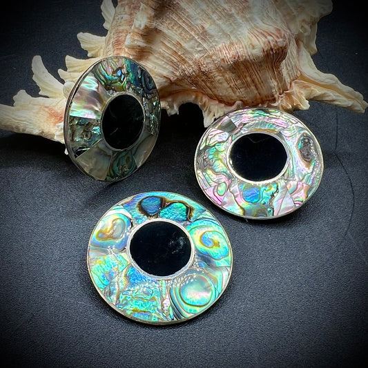 3-Piece Set of Abalone, Black Onyx & Alpaca Silver Earrings & Brooch/Pendant Signed Tequila