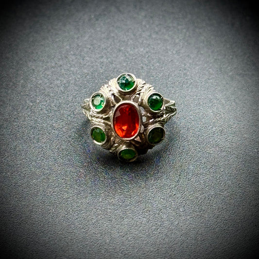 .925 Sterling Silver Peridot & Citrine Stone Ring