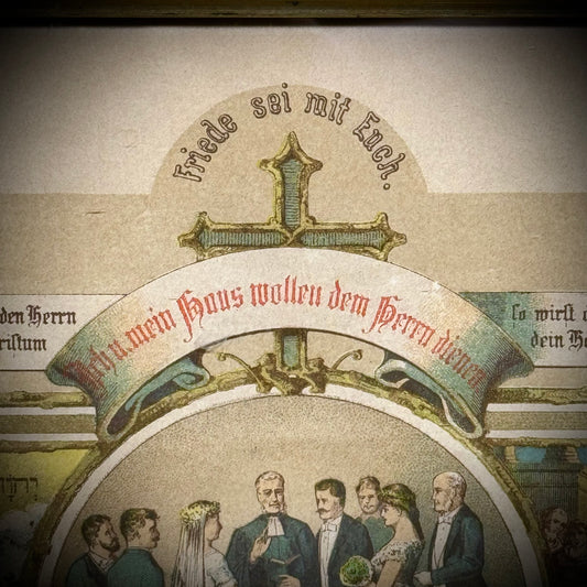 1887 Stone Lithography German American Marriage Certificate in Ornate Frame
