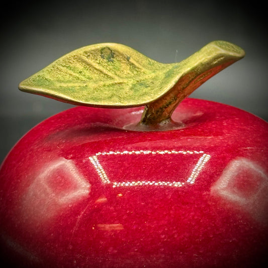 Solid Red Alabaster Apple with Brass Leaf