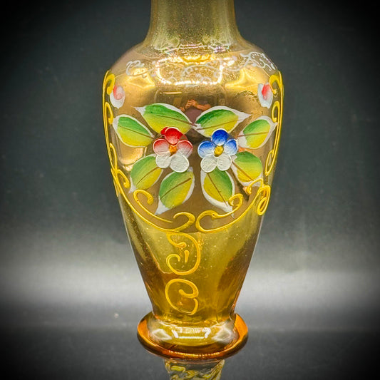 Vintage Painted Floral Motif Bohemian Tall Vase