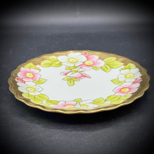 Vintage Hand Painted Bavarian Floral Dish with Gold Accents