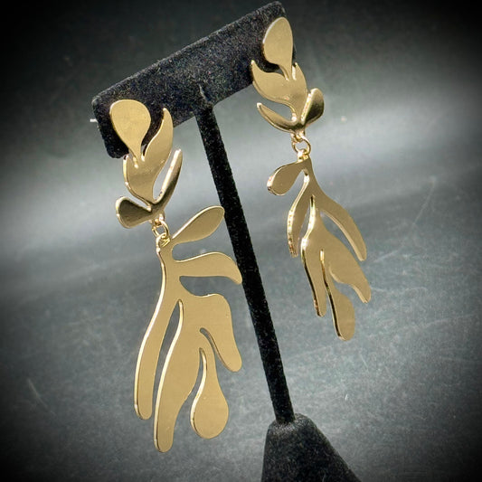 Anthropologie Free Form Long Gold Tone Dangle Earrings