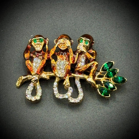 See No Evil, Speak No Evil, Hear No Evil Monkey Brooch