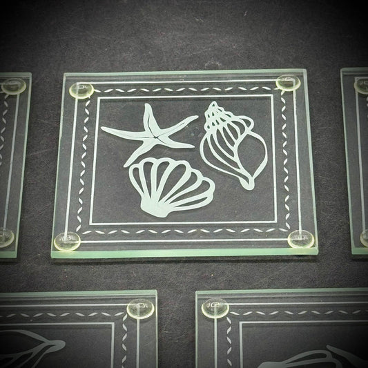 Set of 5 Sea Shell Motif Etched Glass Coasters