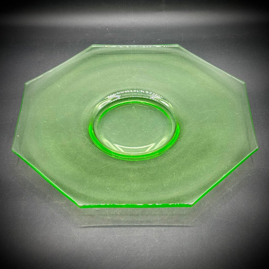 Vintage Glowing Uranium Glass Octagon Cheese Dish