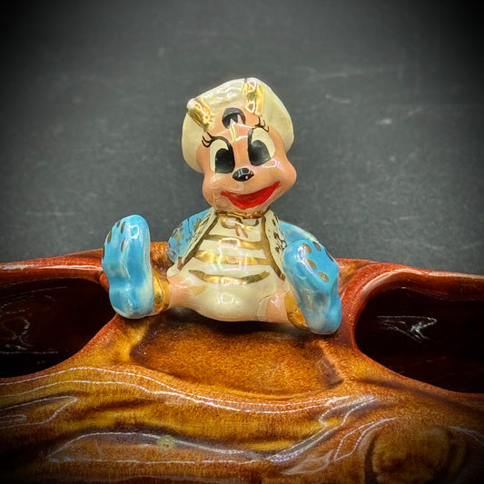 Vintage California Pottery Whimsical Bee on Log