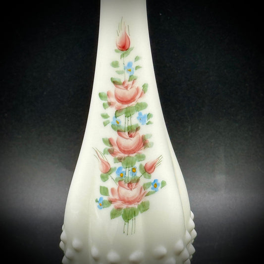 Vintage Fenton Swung Hobnail Milk Glass Hand Painted Vase with Signature