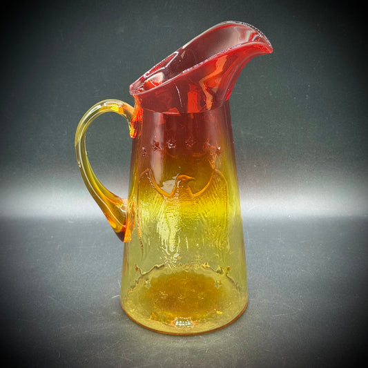 Vintage Kanawha Glass Amberina Large Pitcher with Federal Eagle Motif