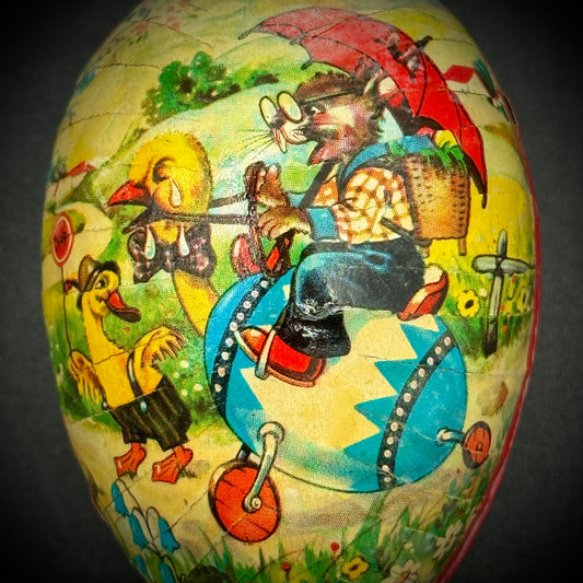 Vintage West Germany Papier Mache Egg Container with Wolf & Duck Motif