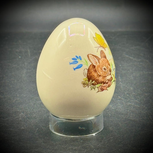 Vintage Painted Porcelain Egg with Bunnies, Birds & Butterflies