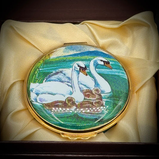 Vintage Royal Worcestershire England Painted Swan Trinket Box