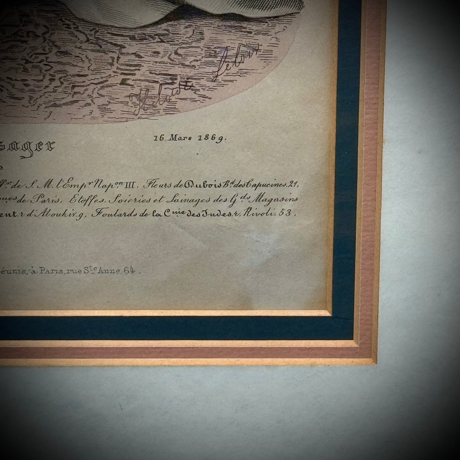Antique 19th Century Hand Tinted Lithograph "La Petit Messager" Professionally Framed