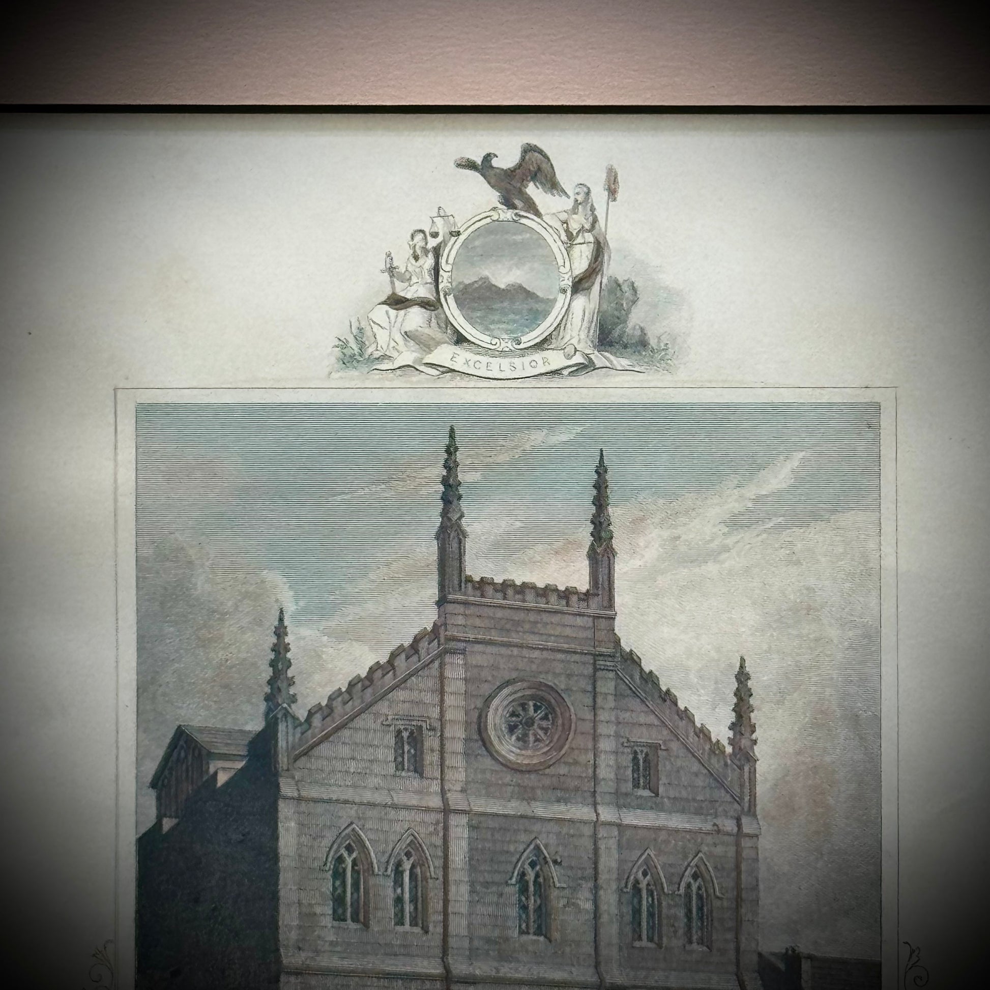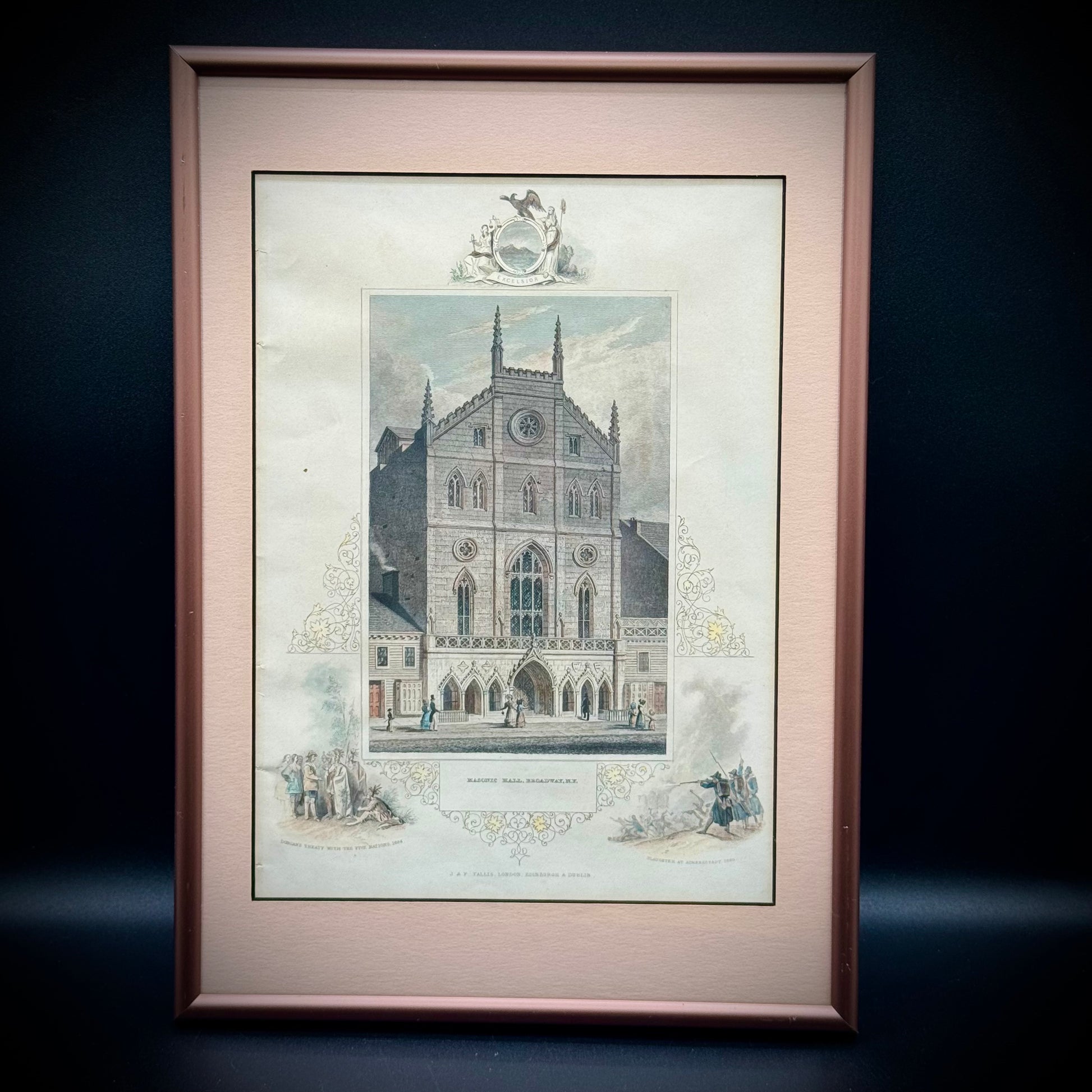 Antique 19th Century Hand Tinted Lithograph "New York Masonic Hall" Professionally Framed