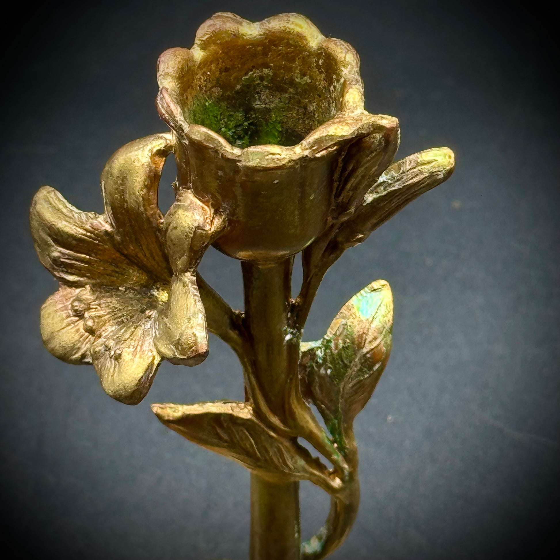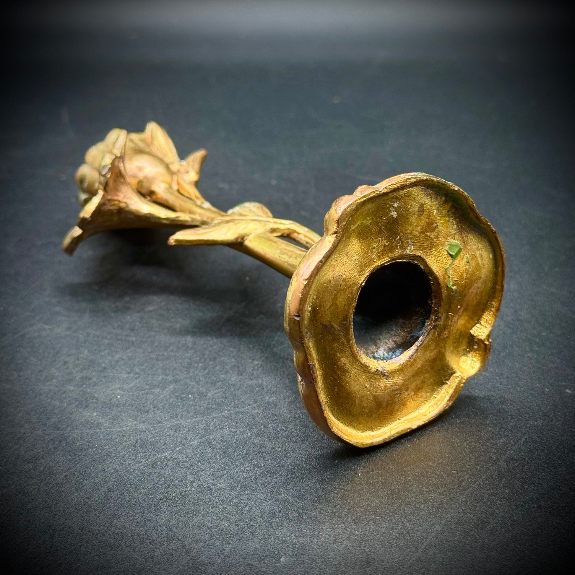 Antique Art Nouveau Gilded Cast Metal Flower Motif Candlestick