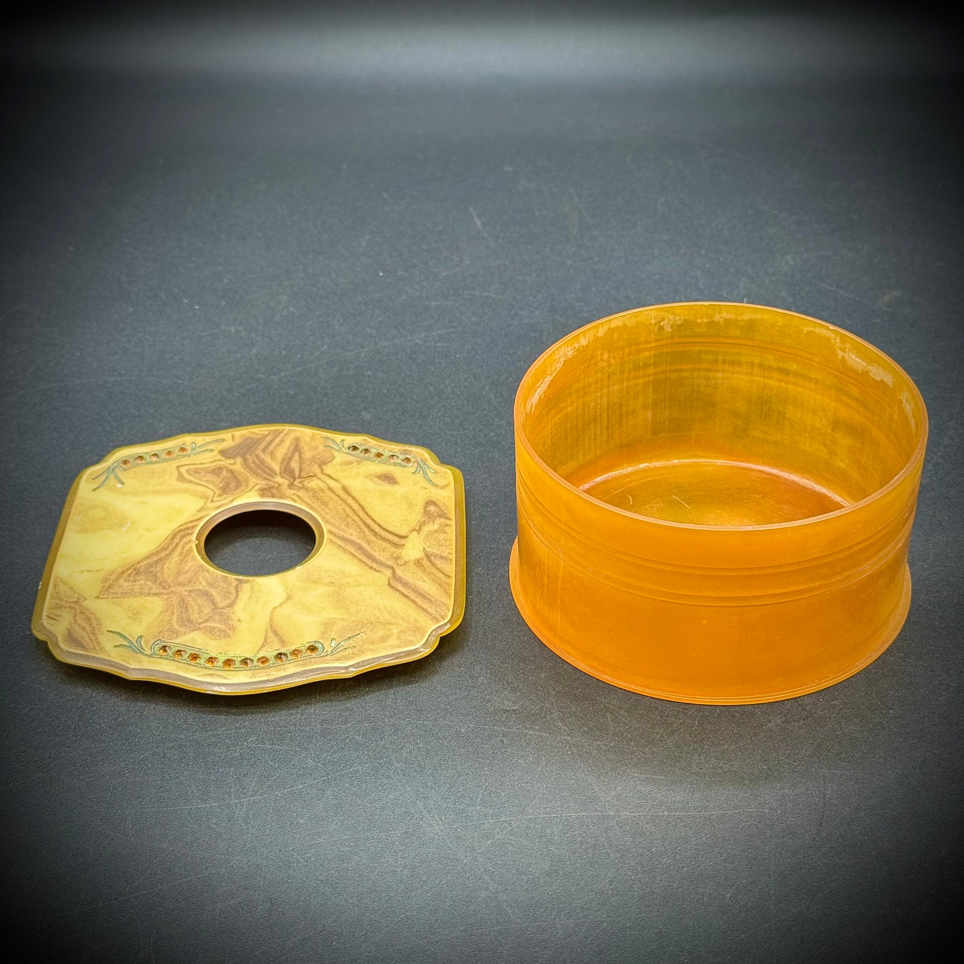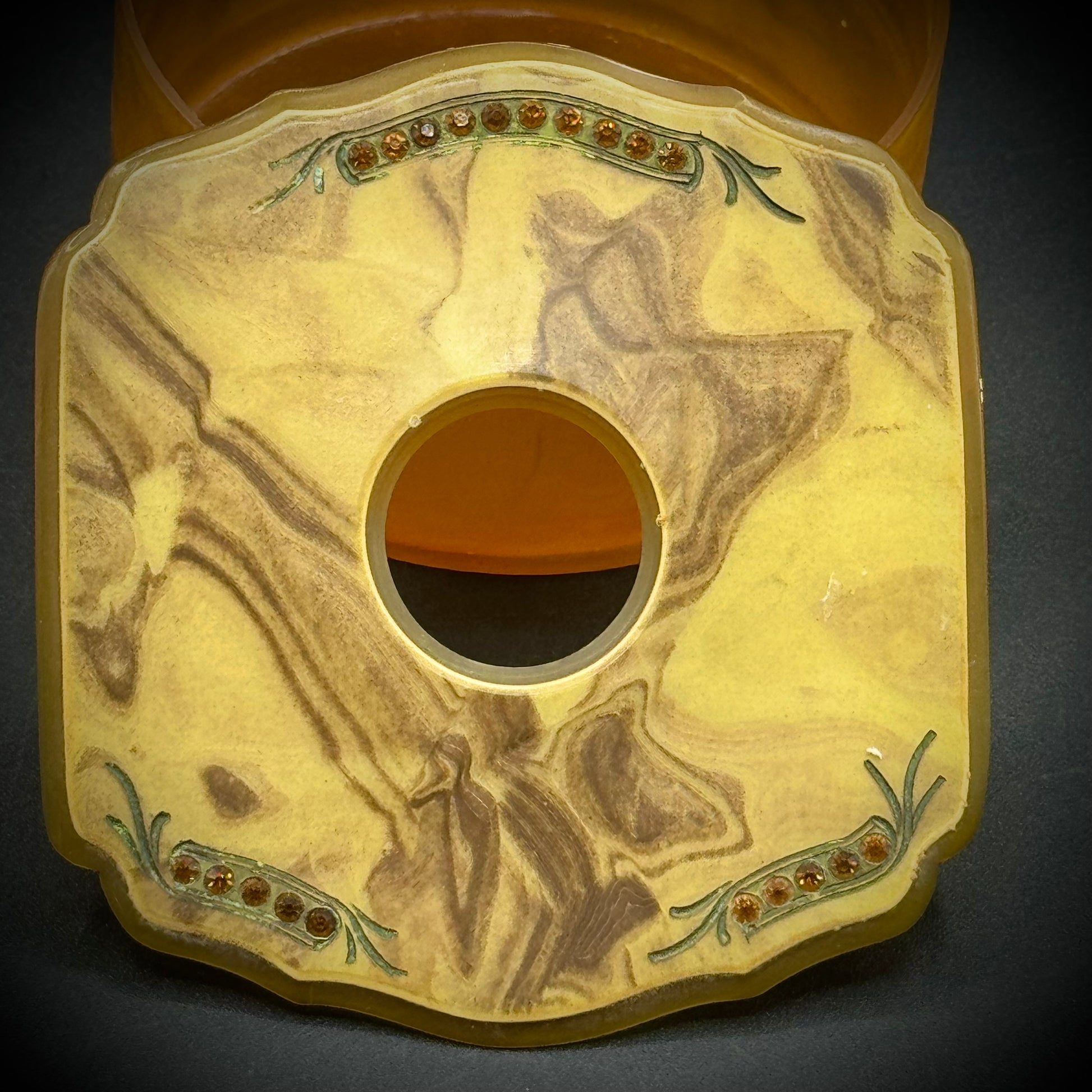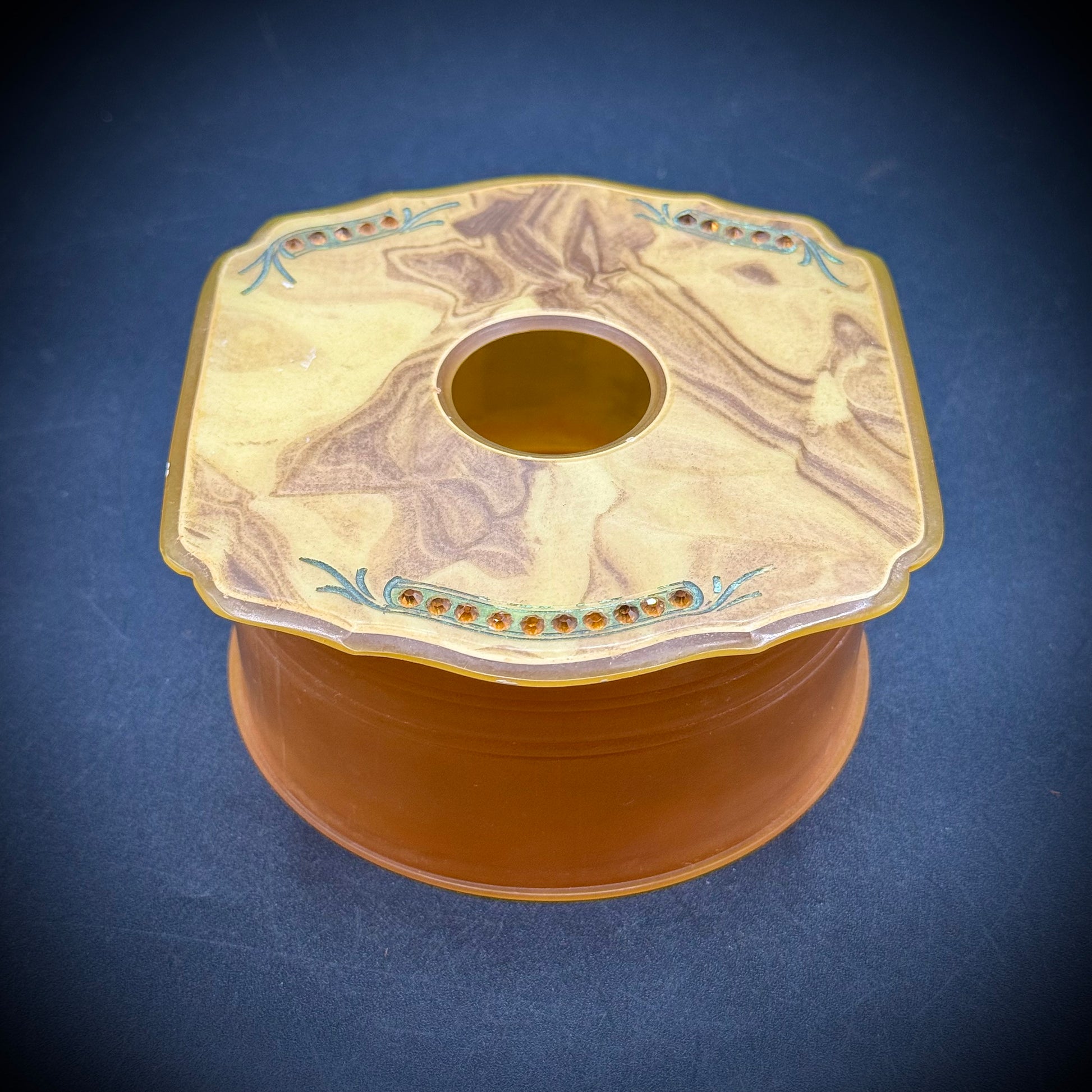 Antique Boudoir Celluloid Hair Receiver with Rhinestones
