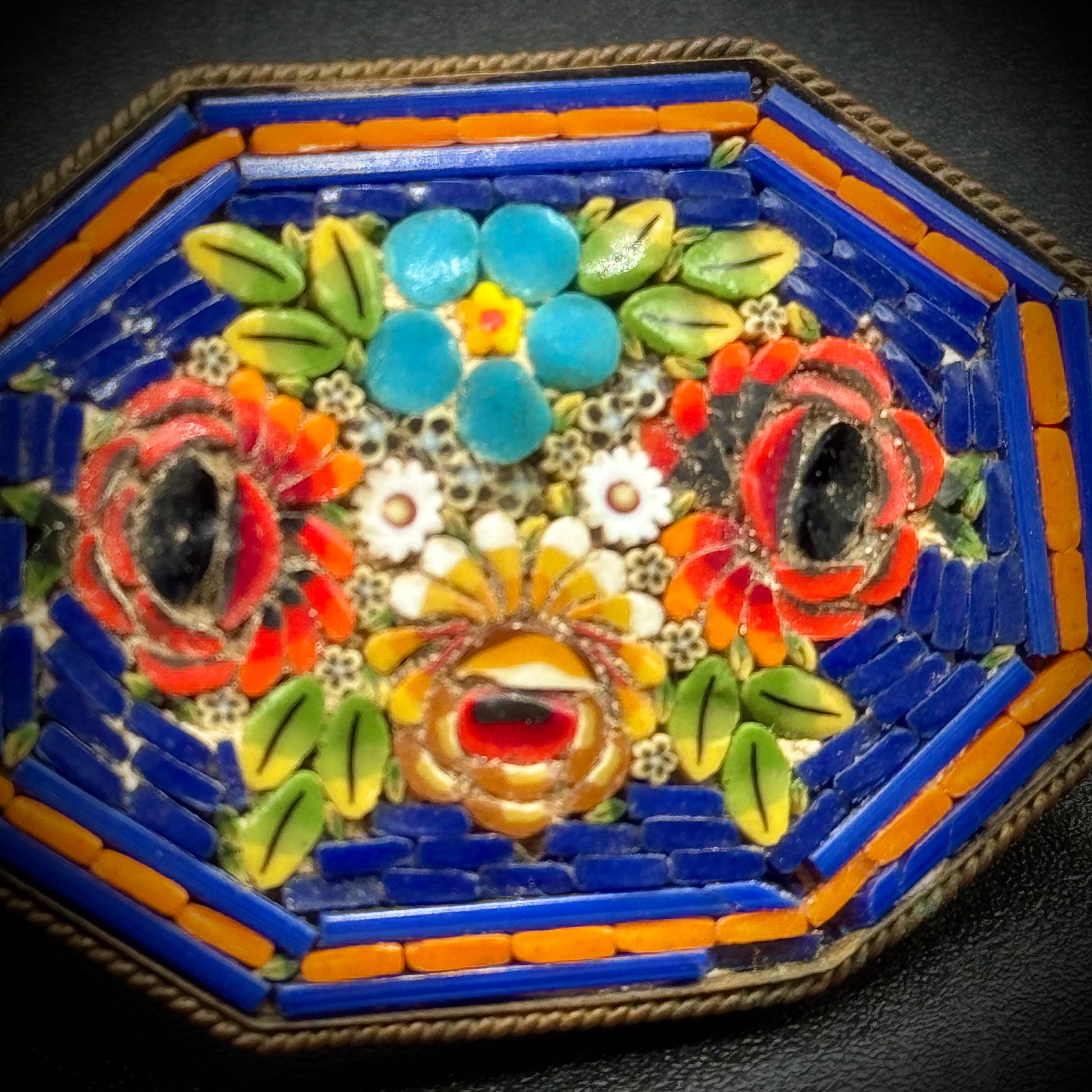 Antique Victorian Micro Mosaic Brooch Made in Italy