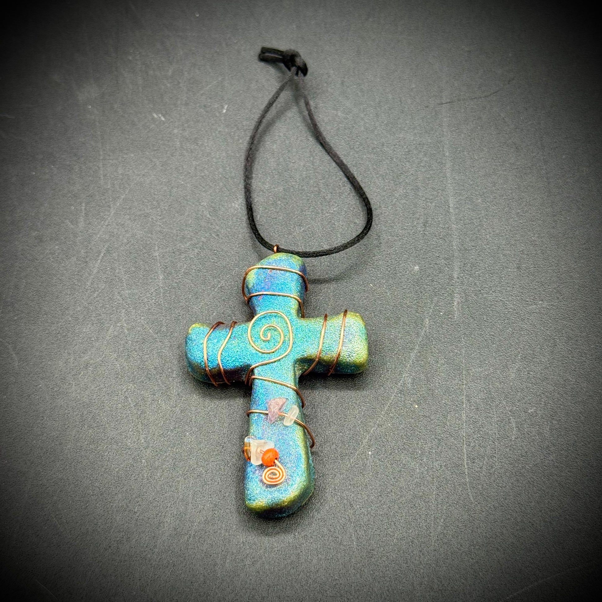Artist Jeremy Diller Signed Raku Pottery Cross