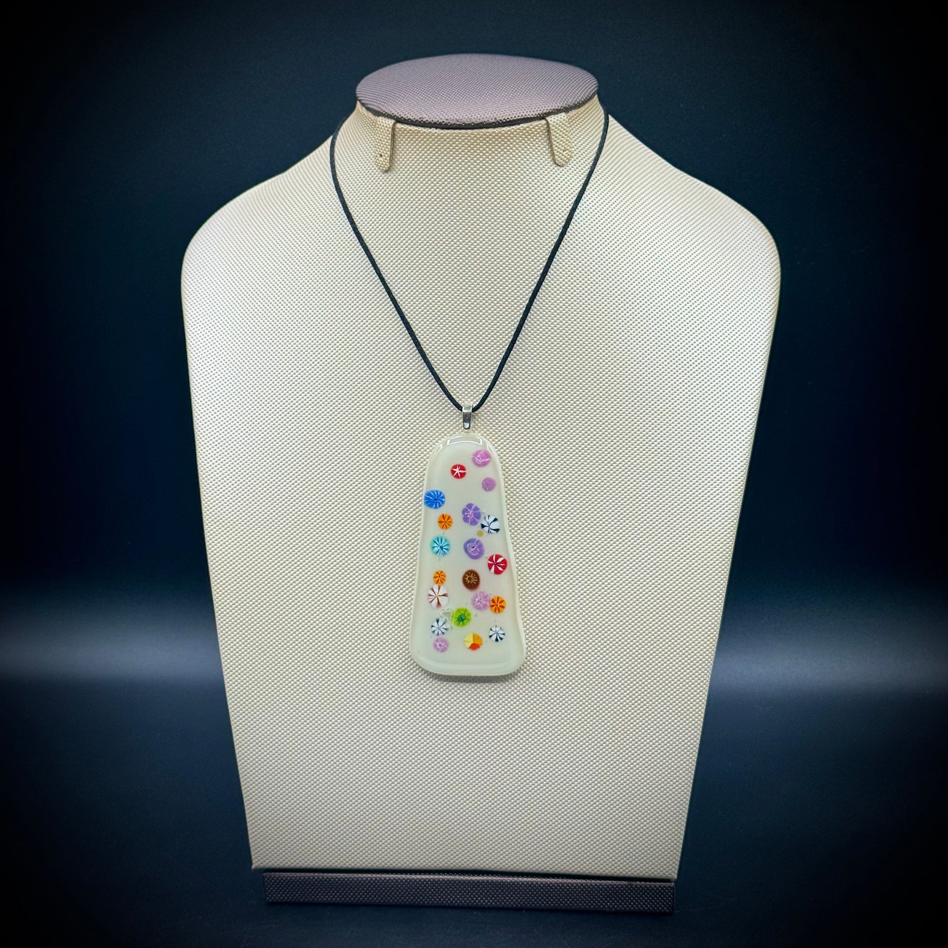 Artist Signed Dichroic Glass Pendant on Silk Cord #01
