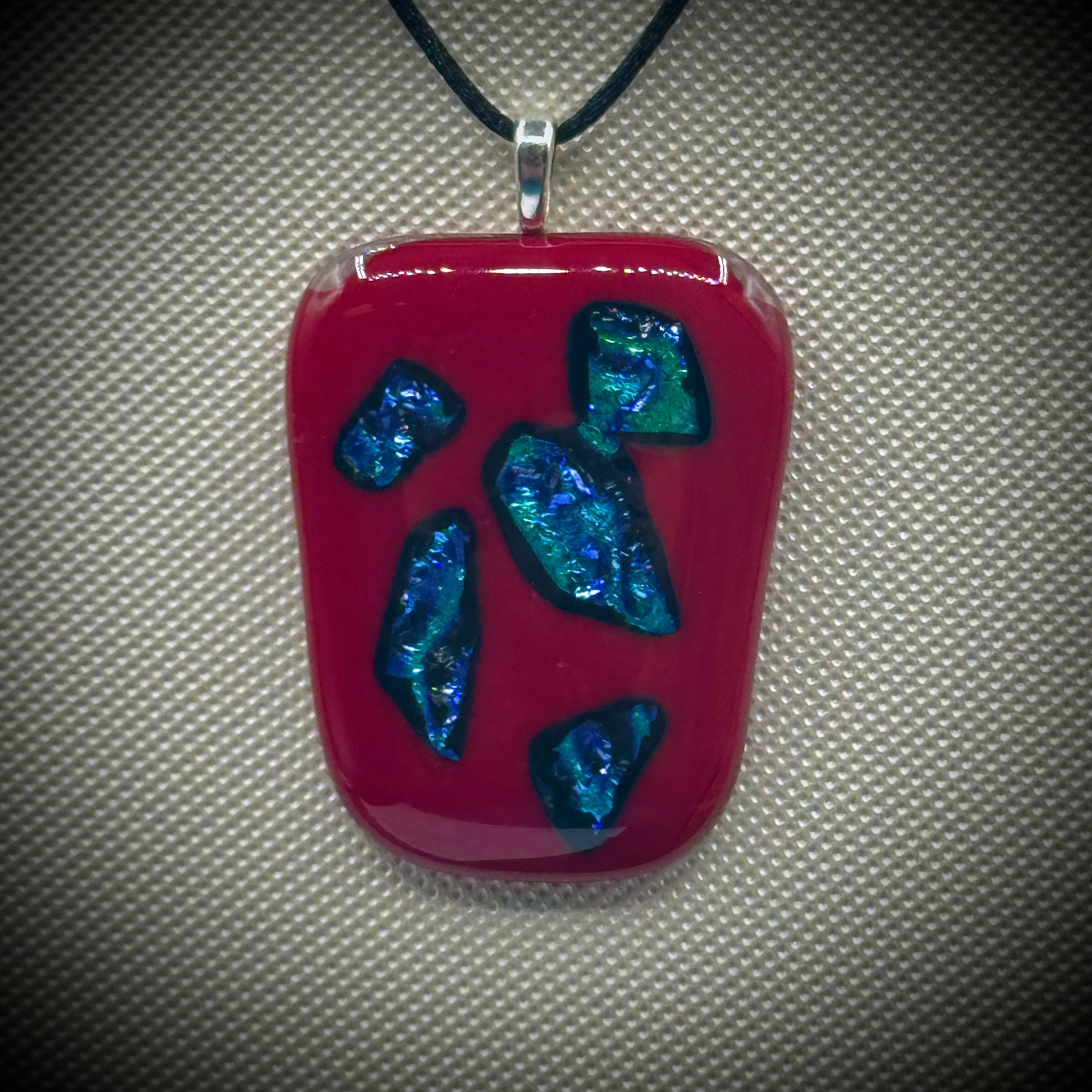 Artist Signed Dichroic Glass Pendant on Silk Cord #03