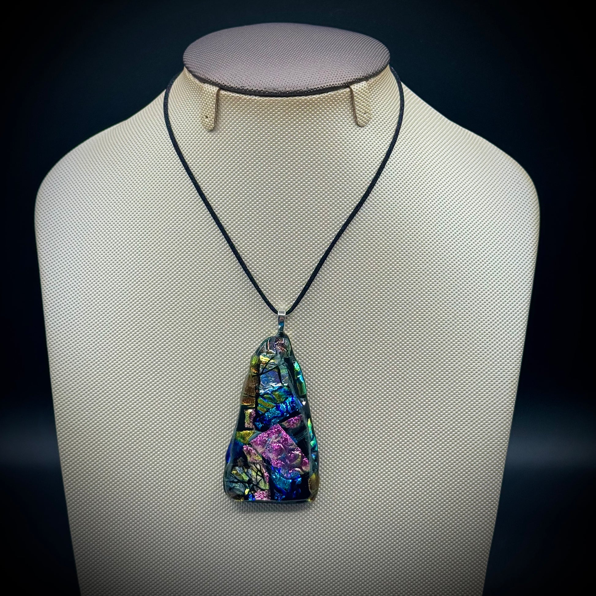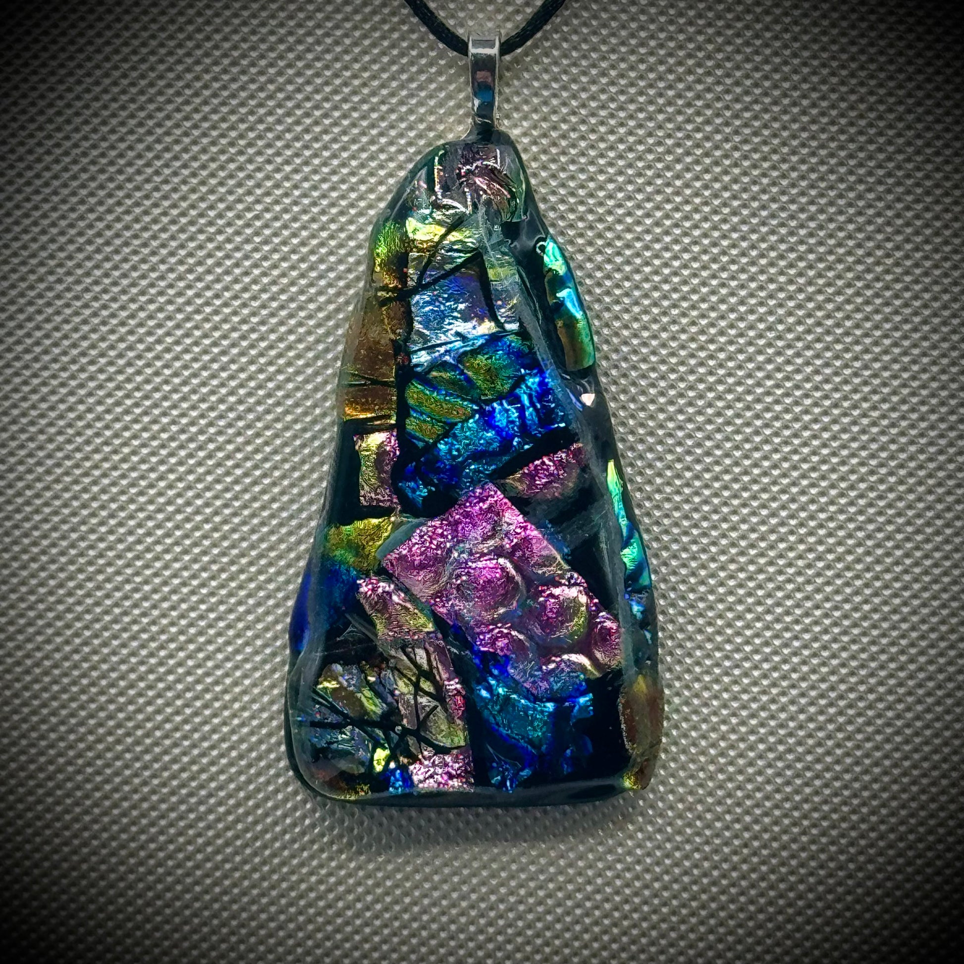 Artist Signed Dichroic Glass Pendant on Silk Cord #11