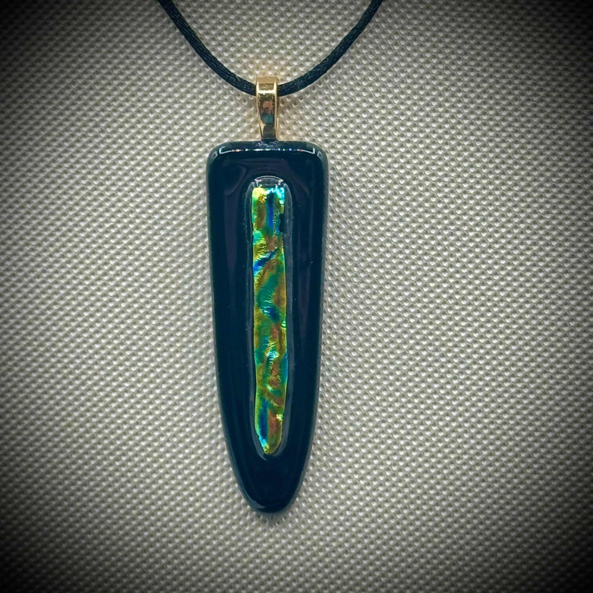 Artist Signed Dichroic Glass Pendant on Silk Cord #16