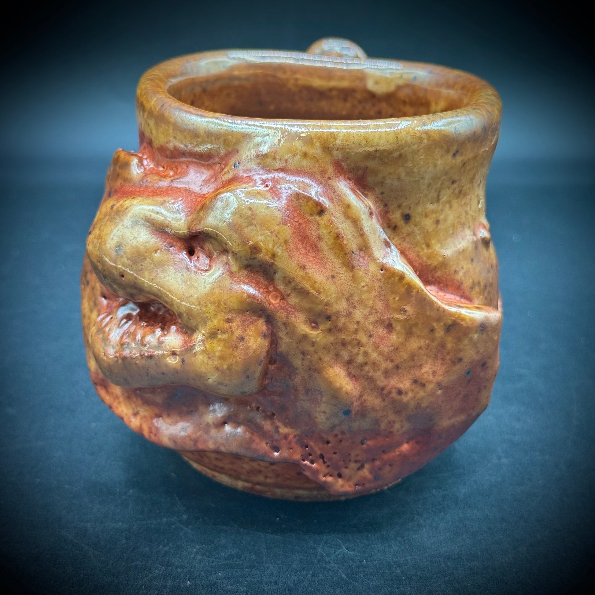 Whimsical and fun, this mug depicts a T-Rex and it's footprints. Nice balance and weight on this studio/artist signed piece.