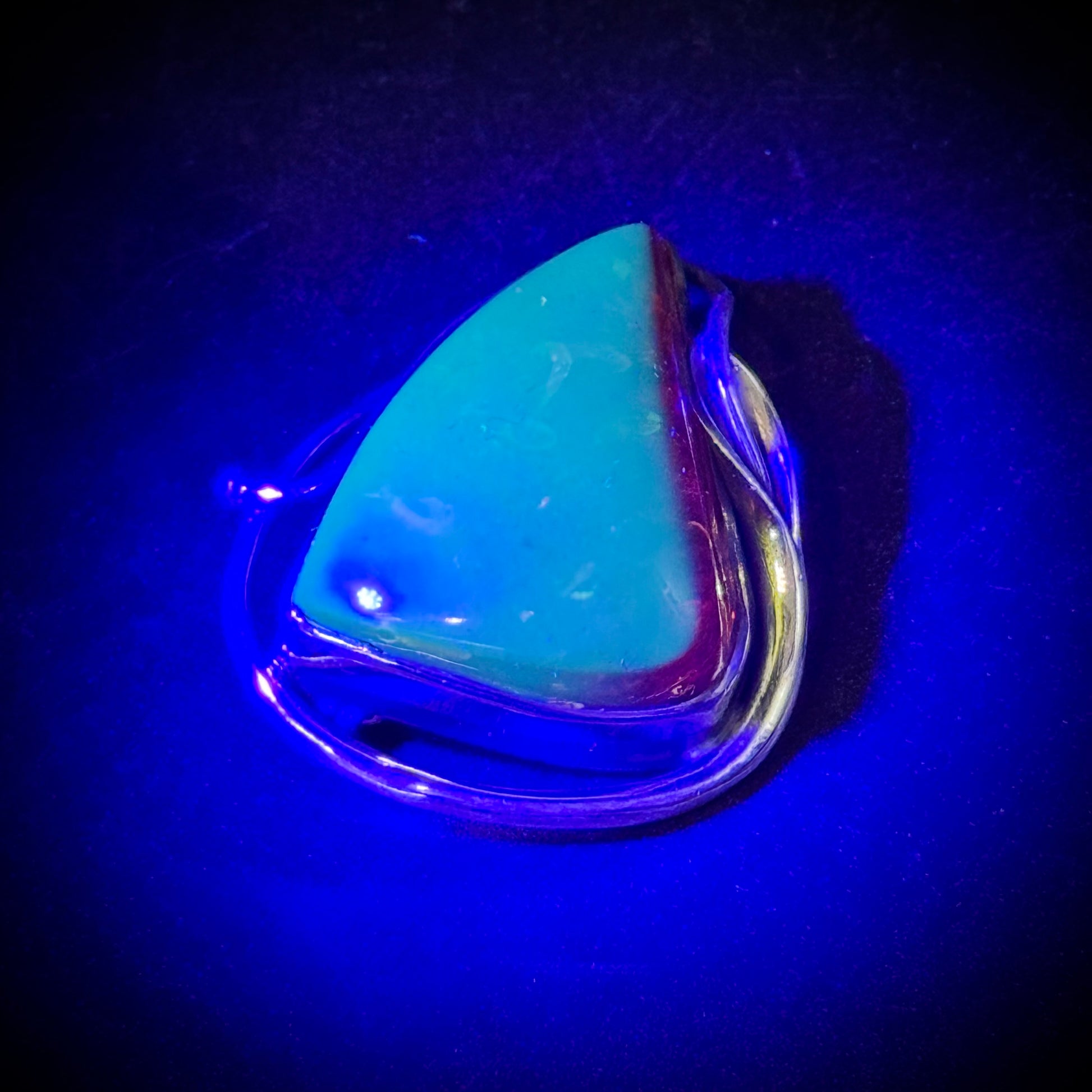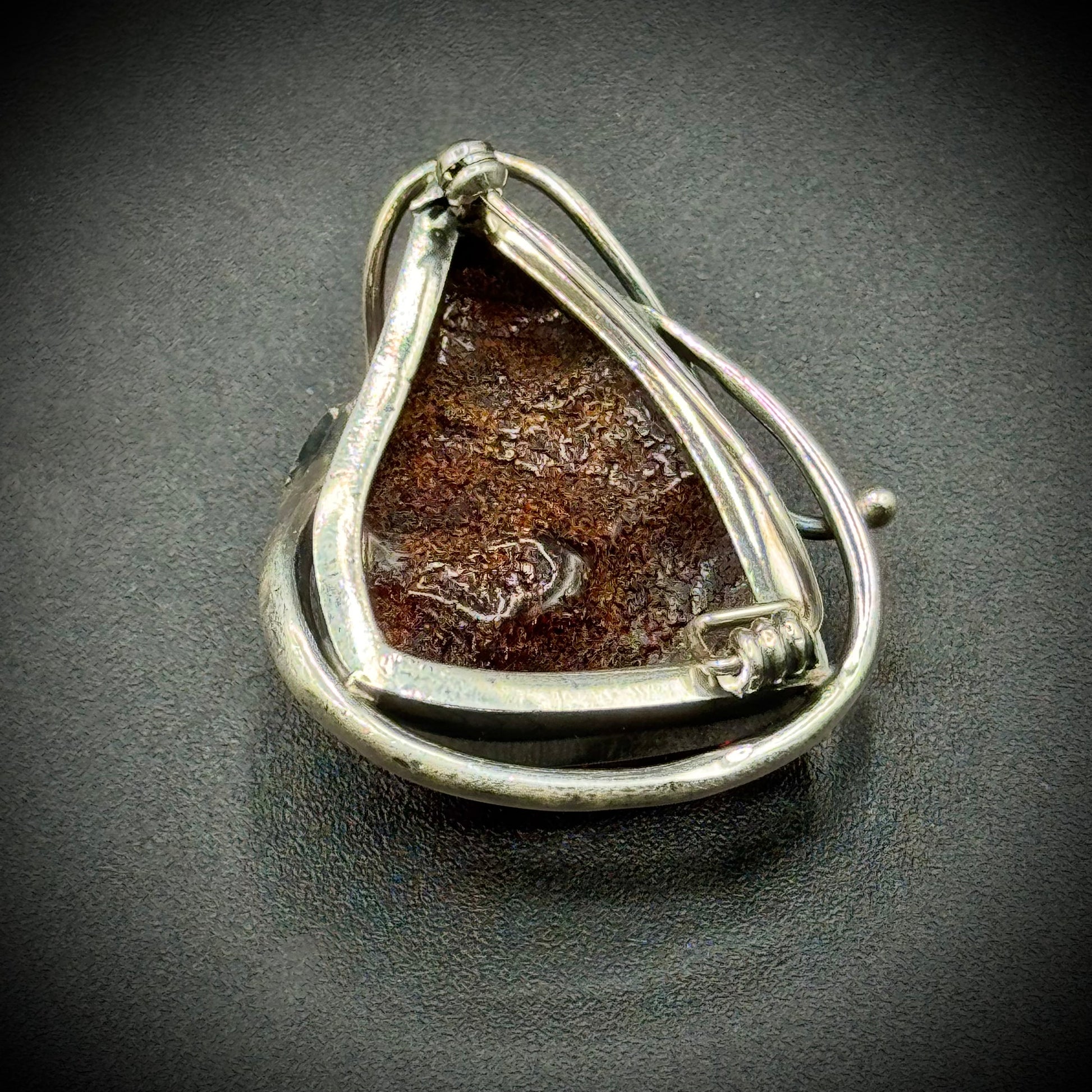 Stunning large piece of dark rich amber with a free form unmarked Sterling Silver accent and backing. Similar examples by the same artist sell for upwards of $250.00!