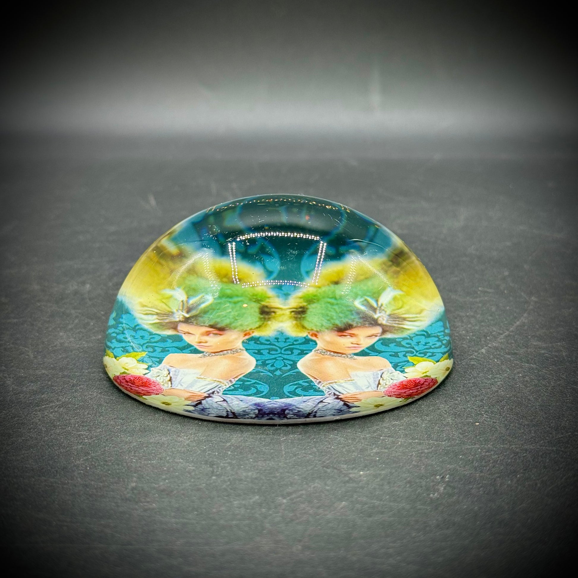 French Marie Antoinette Motif Convex Glass Paperweight