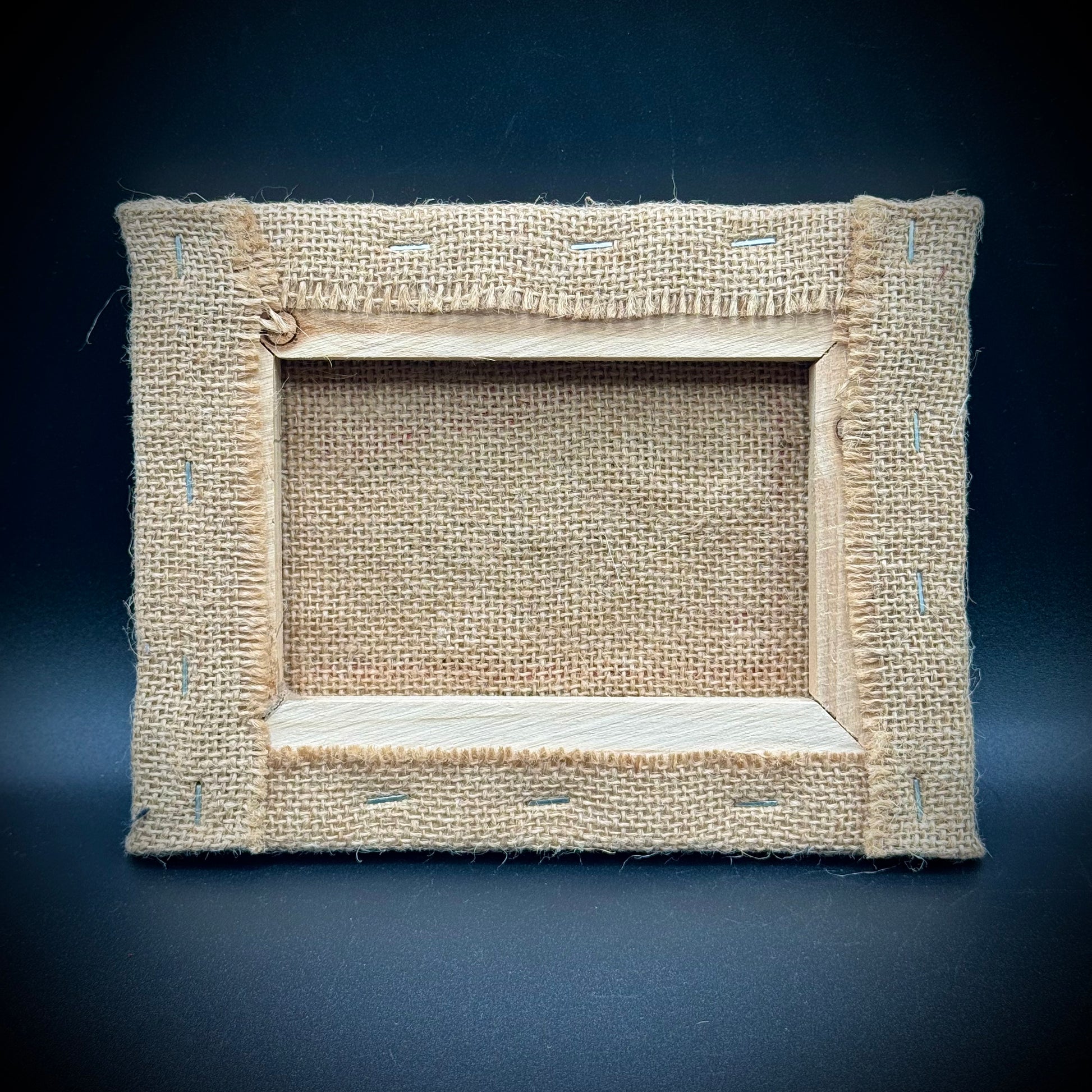 Hand Painted & Artist Signed Winter Scene Mounted on Burlap Frame
