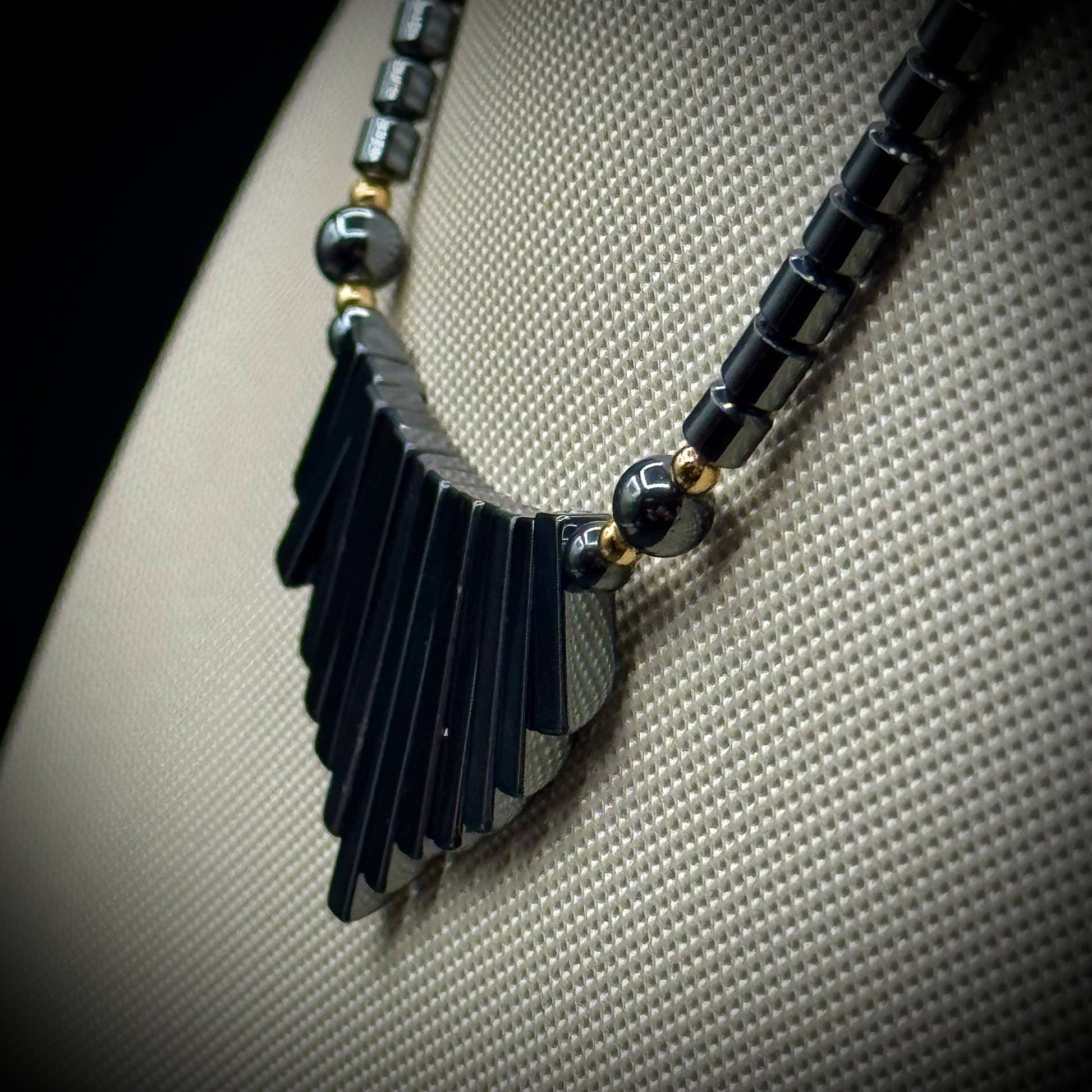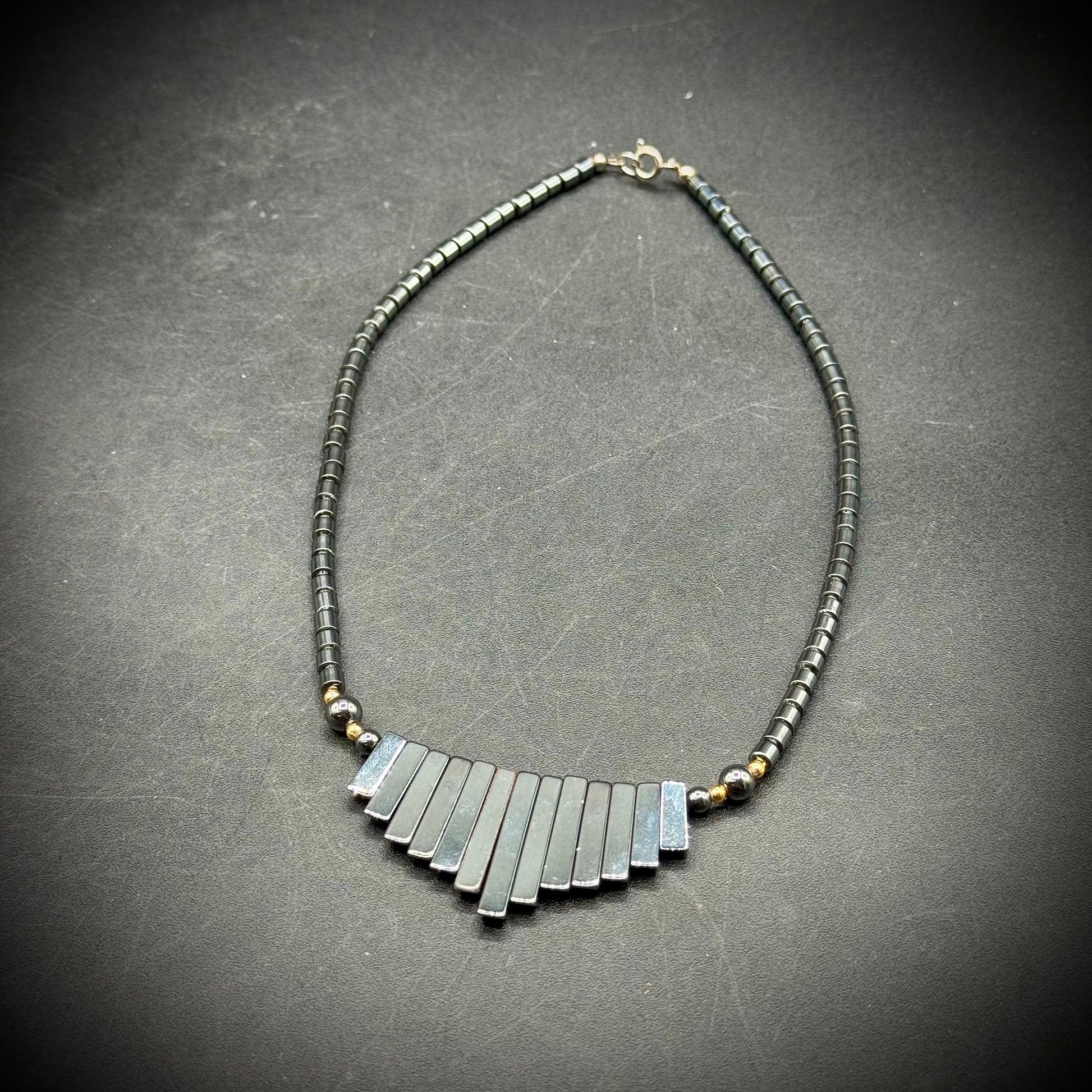 Hematite Fan Style Necklace with Lobster Clasp
