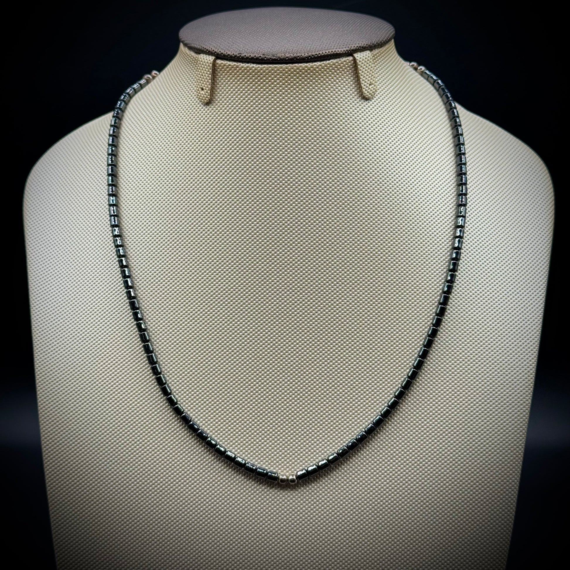 Hematite & Silver Tone Accent Necklace with Shepherd's Hook Clasp