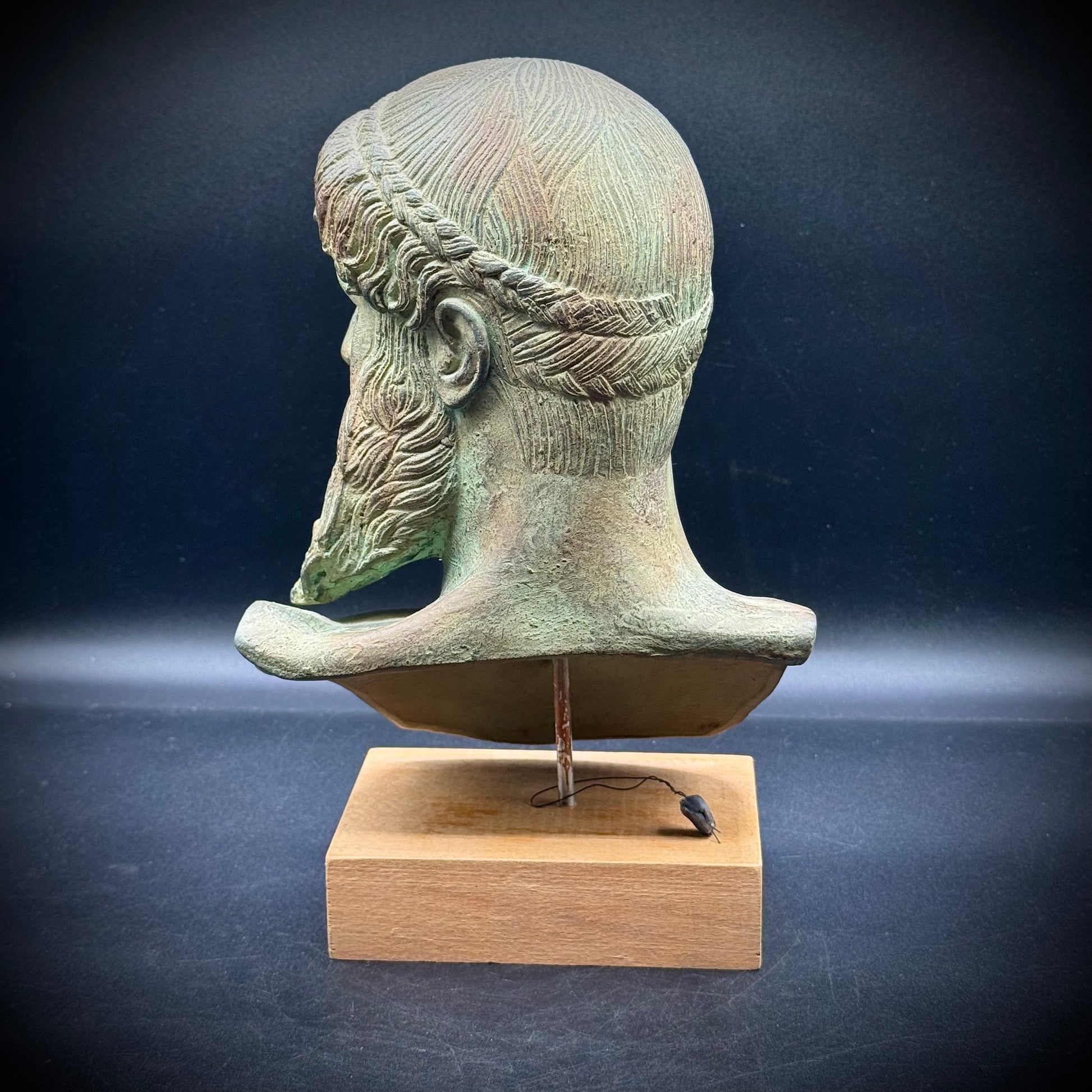 Stunning Ancient God museum quality bust with original tag showing Hand Made in Greece.