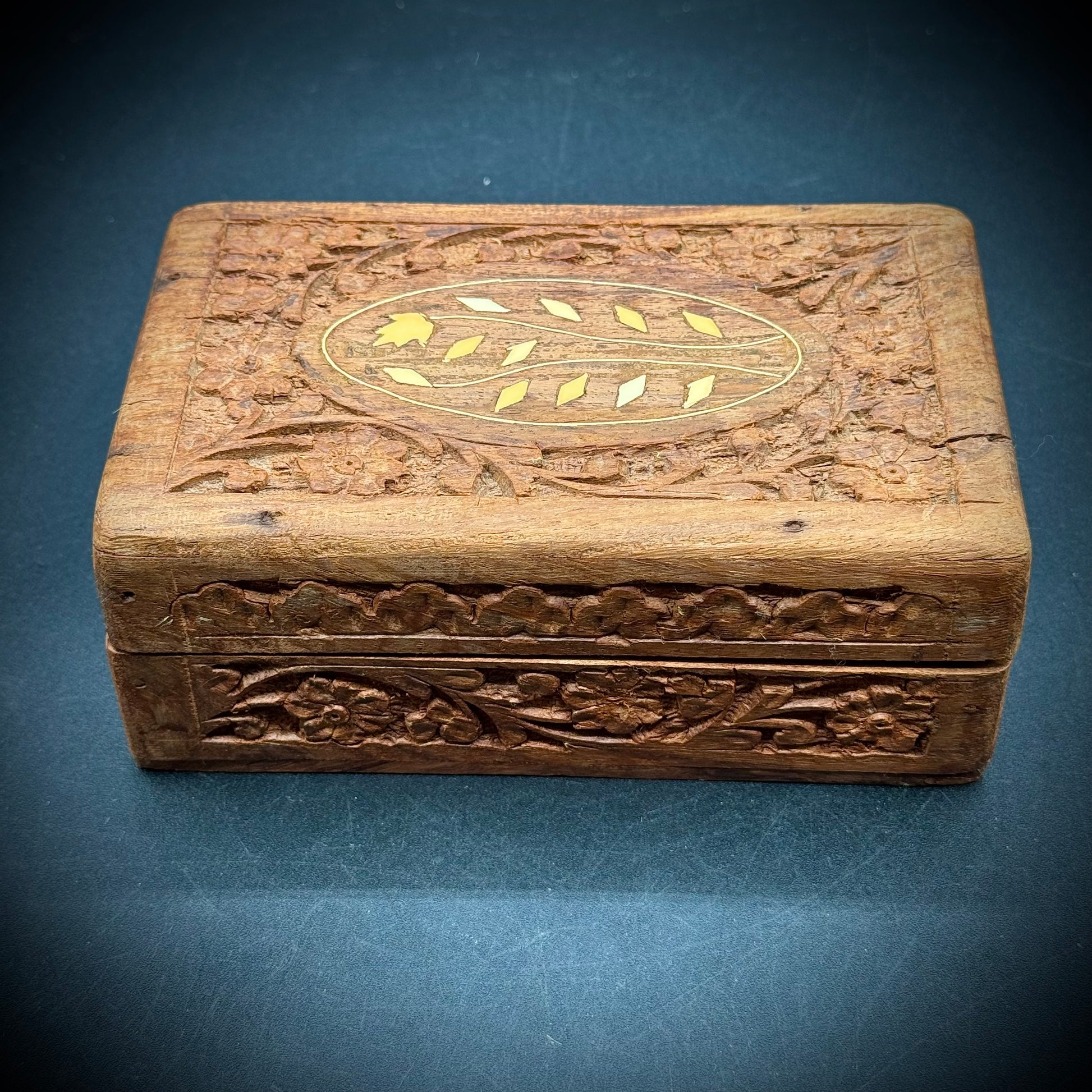 Inlaid Rosewood Carved Trinket Box - Made in India