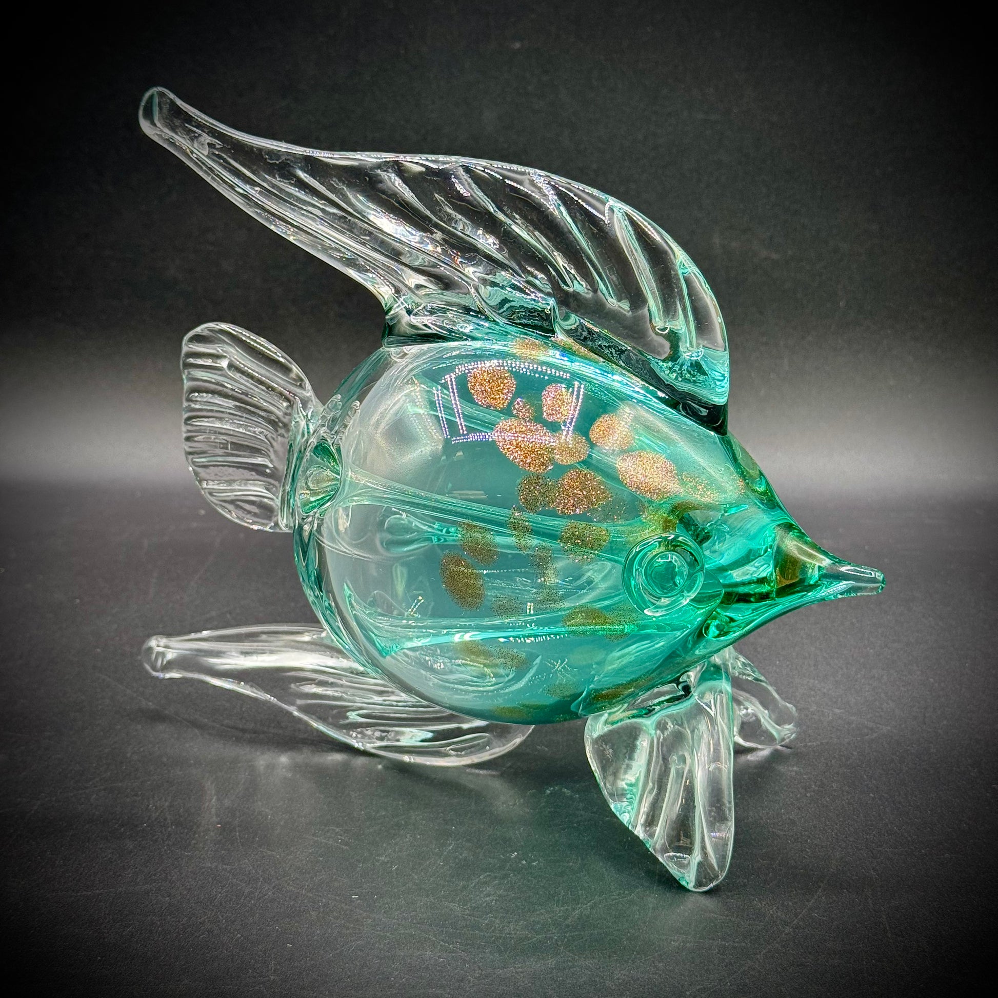 Large Blown Art Glass Fish with Gold Accents