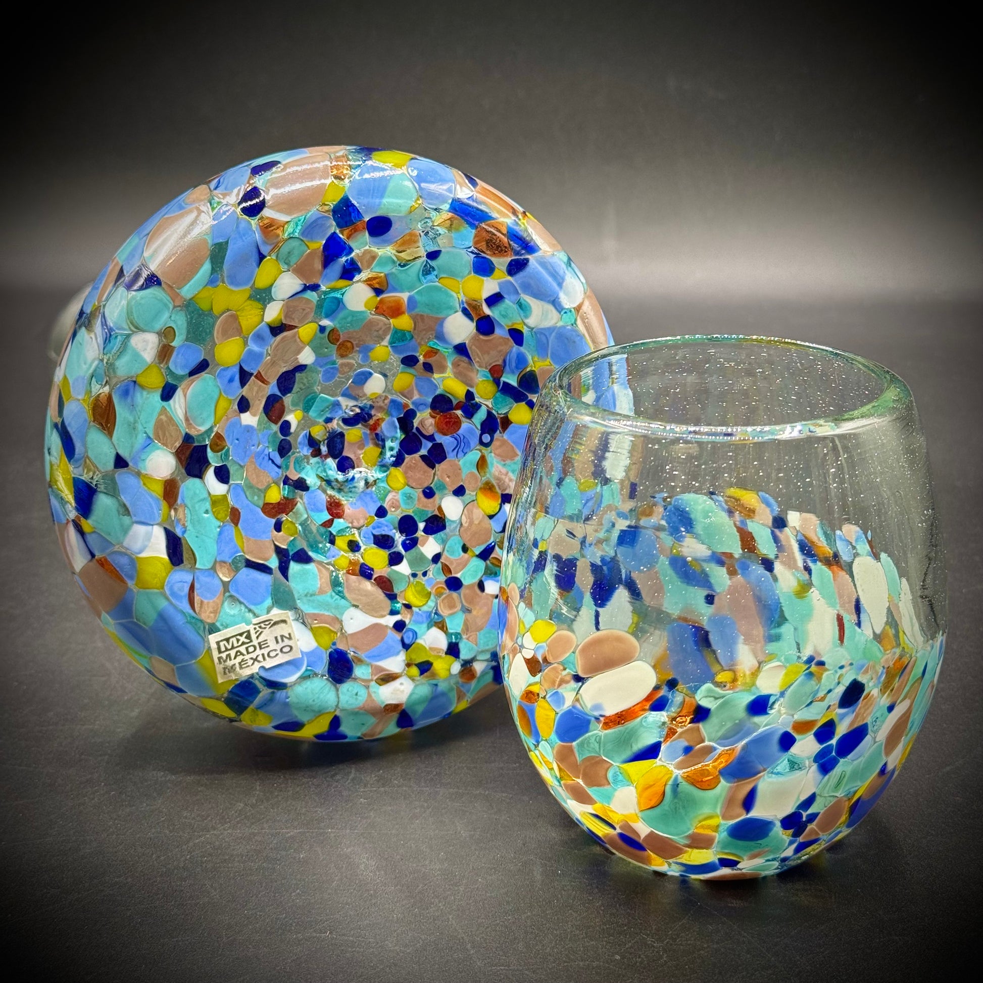 Mexican Recycled Art Glass Tumble Up Carafe & Glass