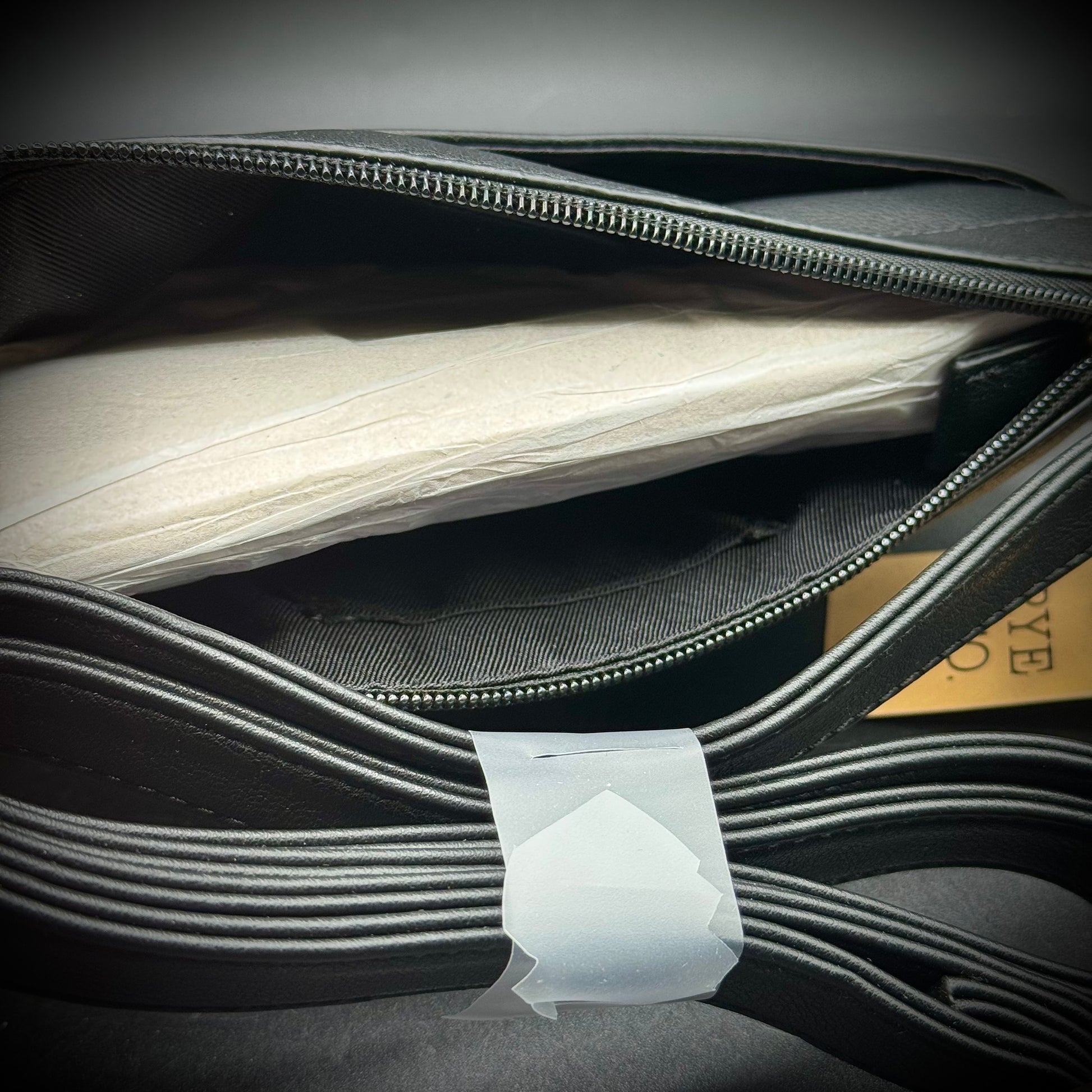 Beuatiful black buttery leather with original tags and strap still wrapped in plastic