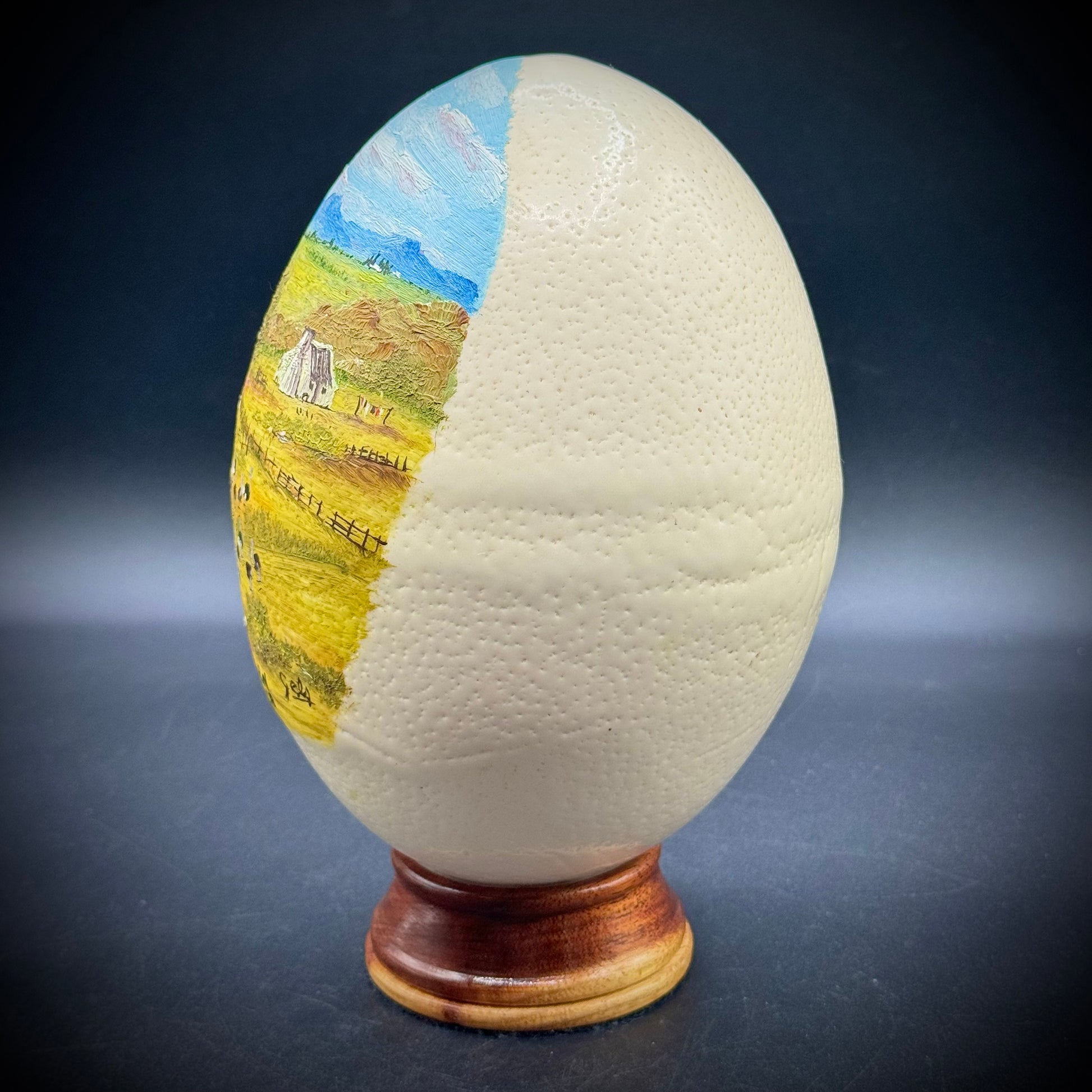 Original Artist Hand Painted South African Ostrich Egg on Wood Base