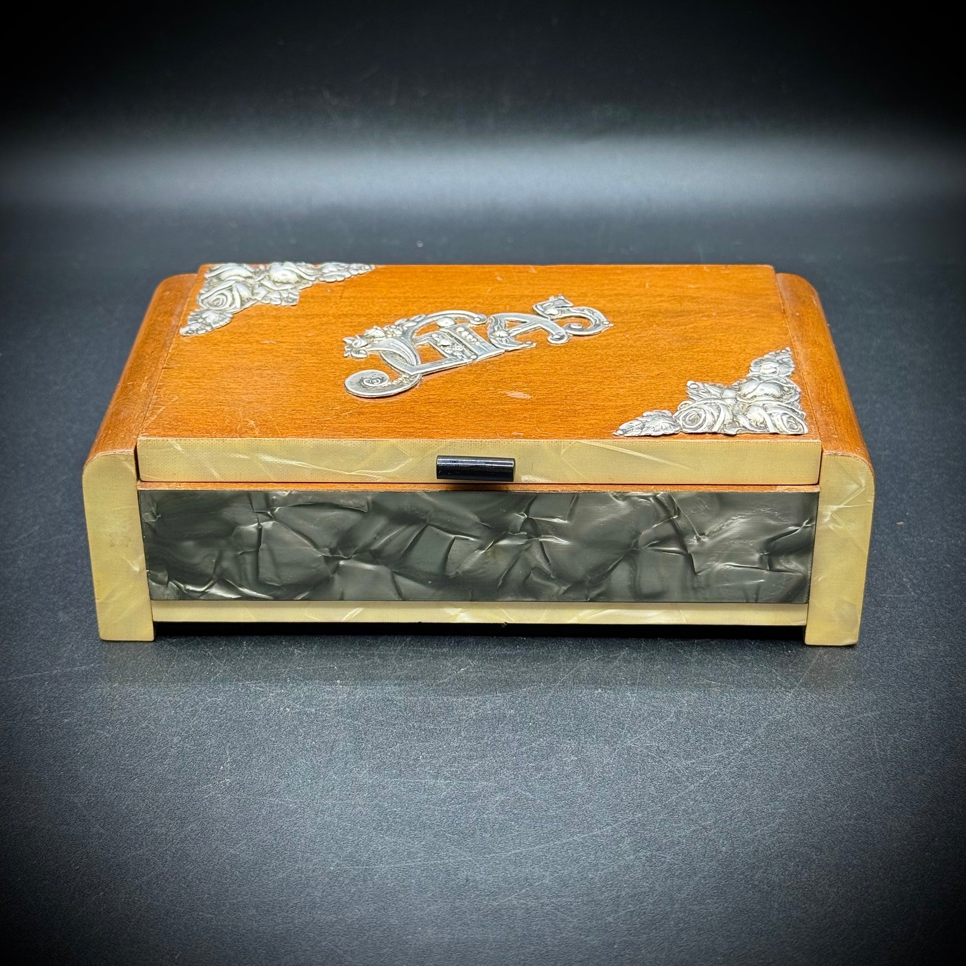 Ornate Art Deco Jewelry Box with Sterling Silver Accents