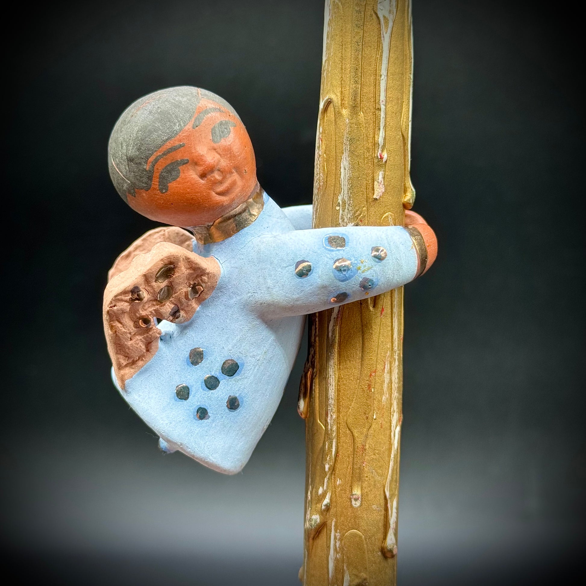 Pair of Hand Made Folk Art Blue Tone Clay Candle Angel Huggers
