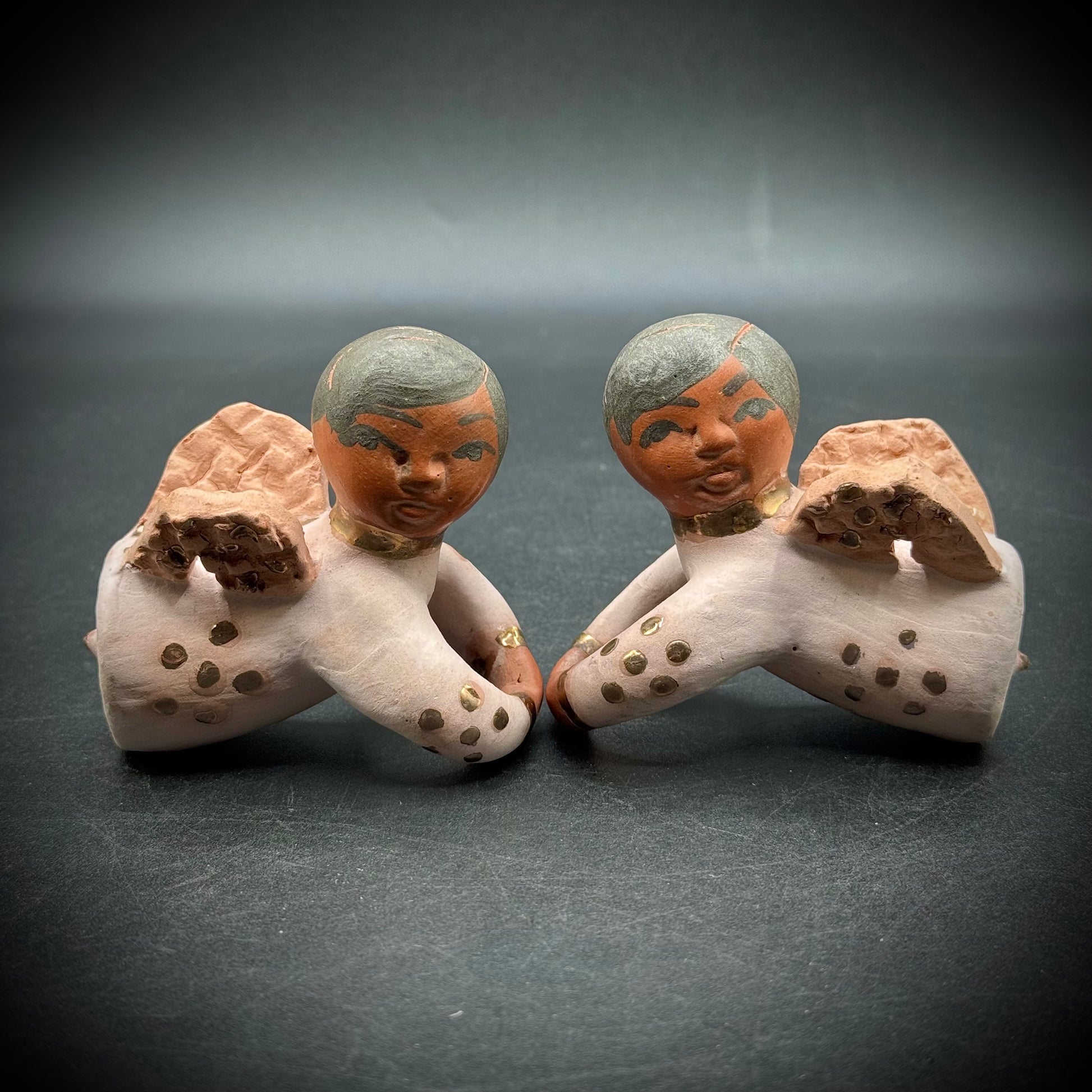 Pair of Hand Made Folk Art Pink Tone Clay Candle Angel Huggers
