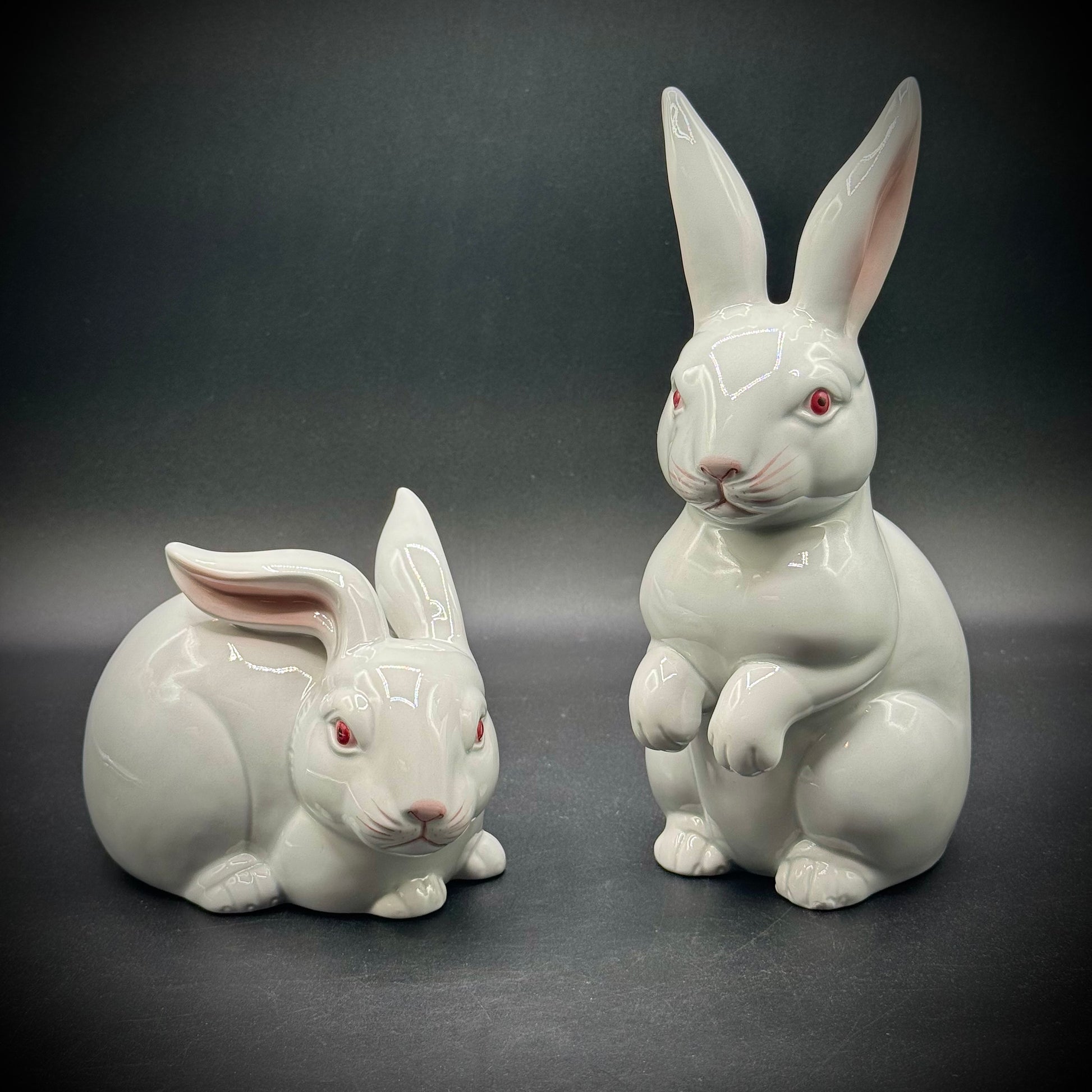 Pair of Vintage 1975 Hand Painted Fitz & Floyd Rabbit Figurines