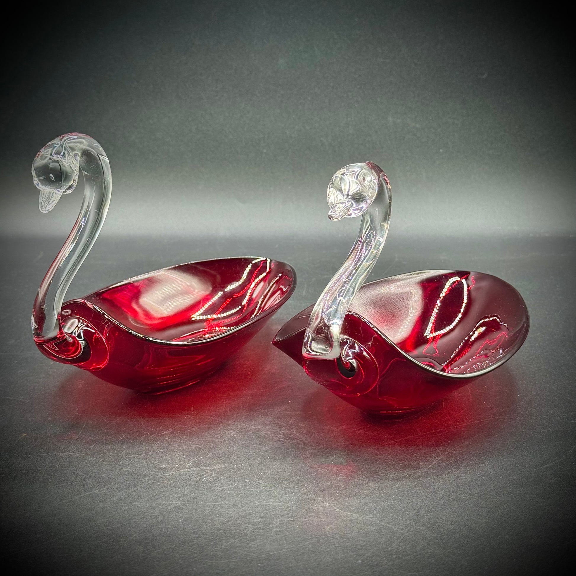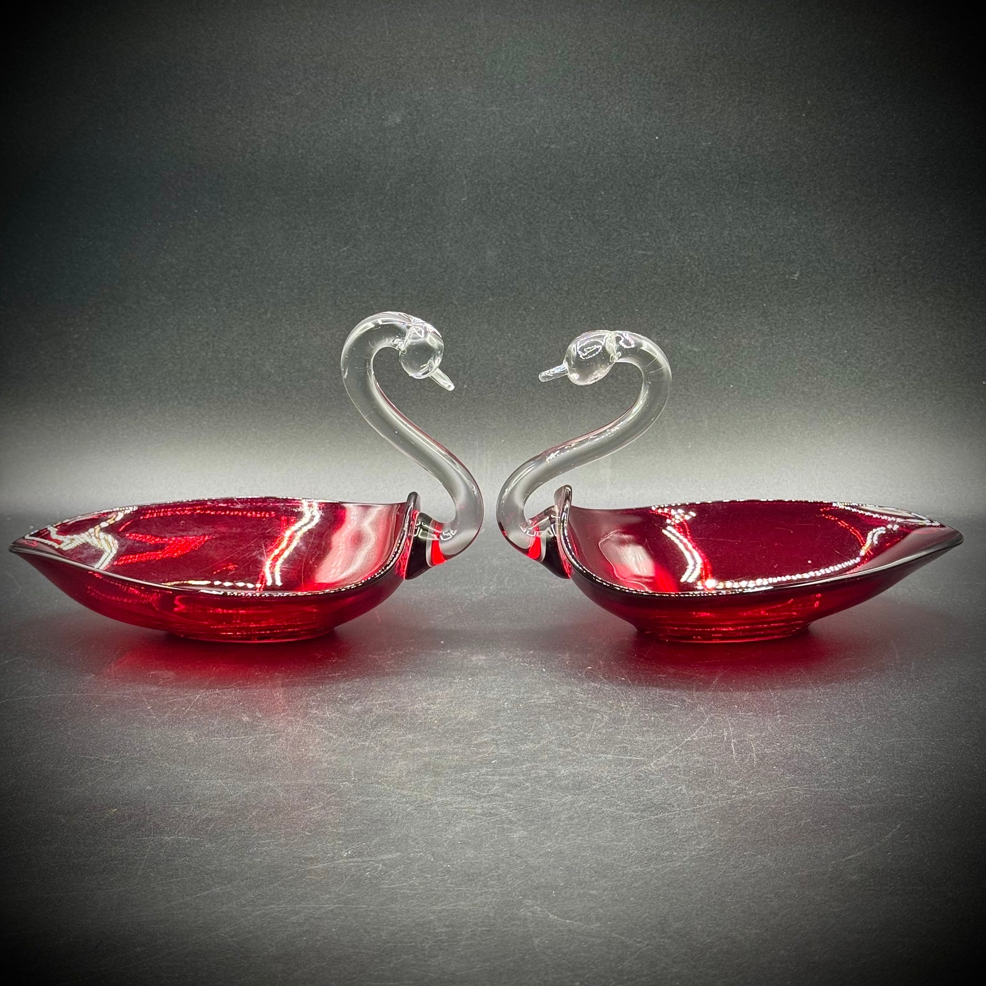 Pair of Vintage Duncan Miller Blown Glass Swan Dishes