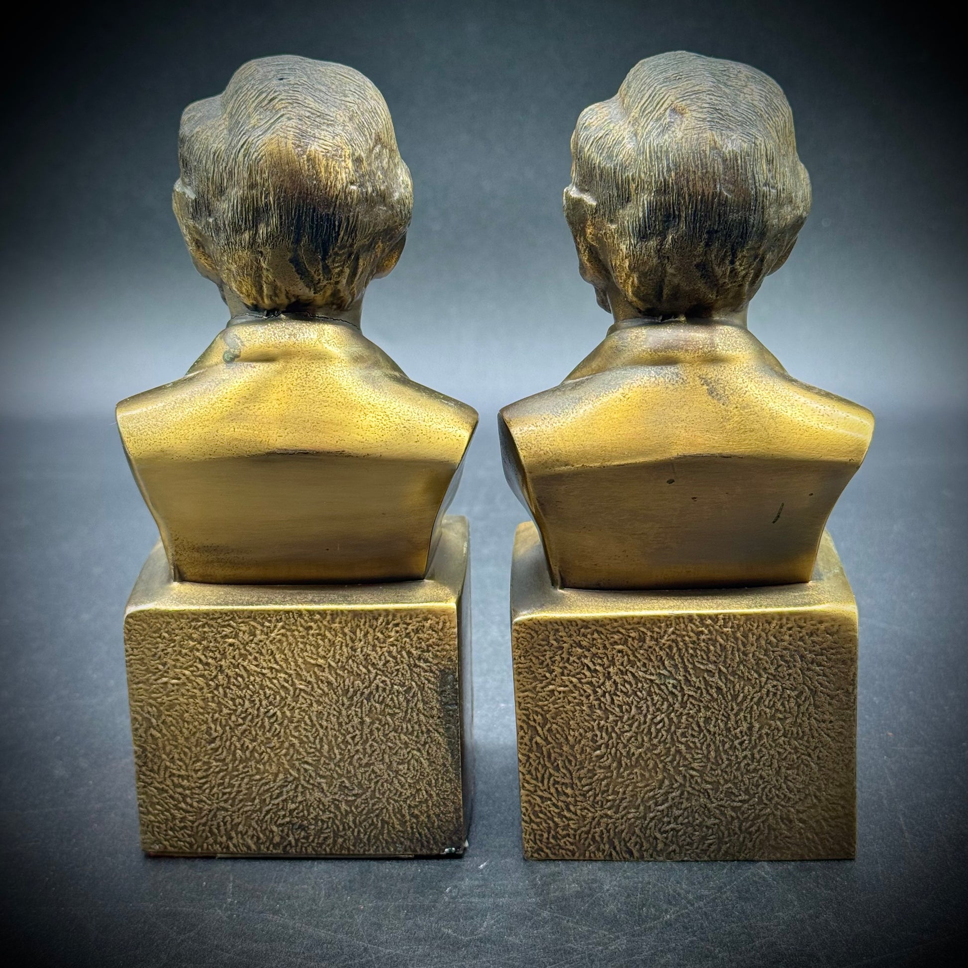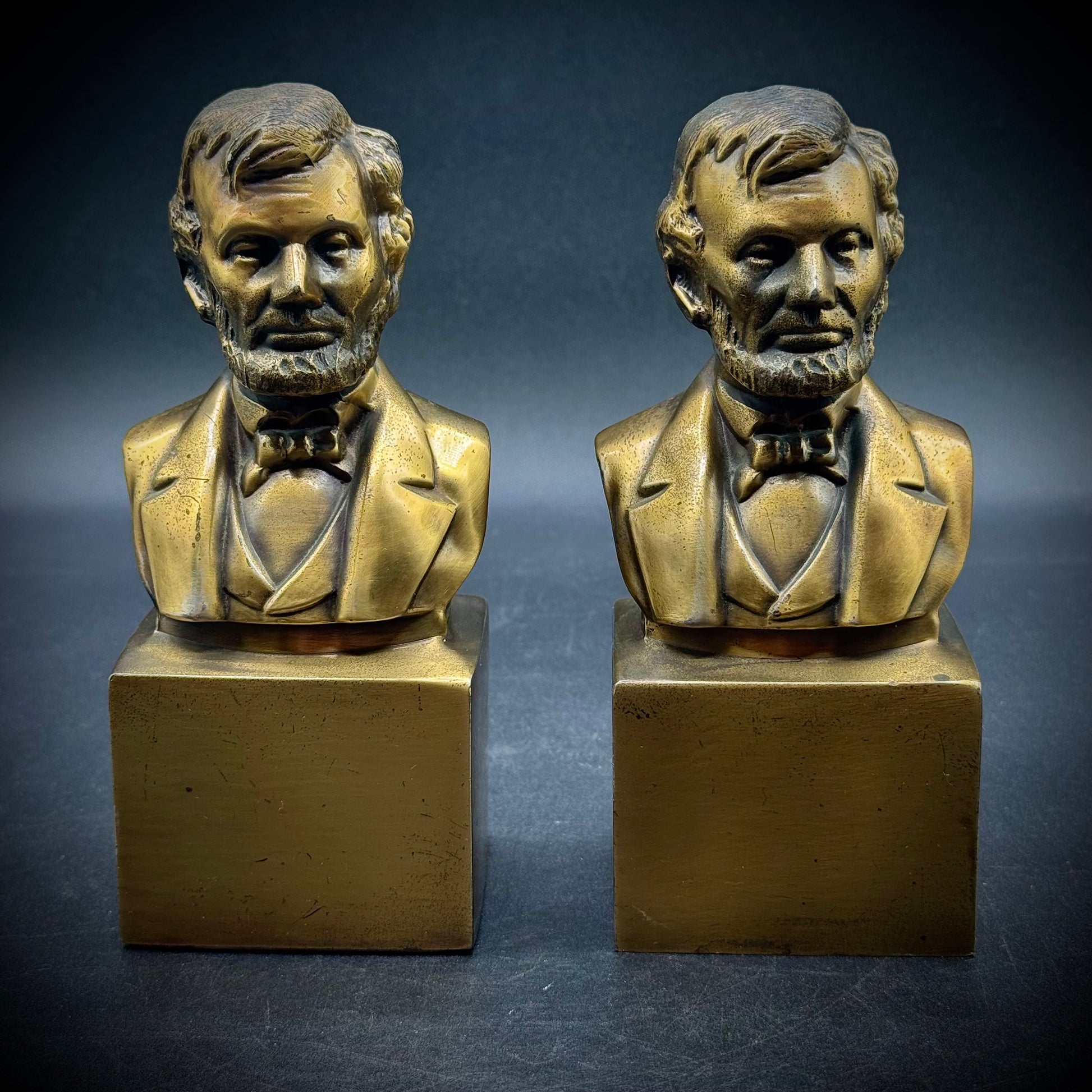 Pair of Vintage Heavy Bronze Abraham Lincoln Bust Bookends