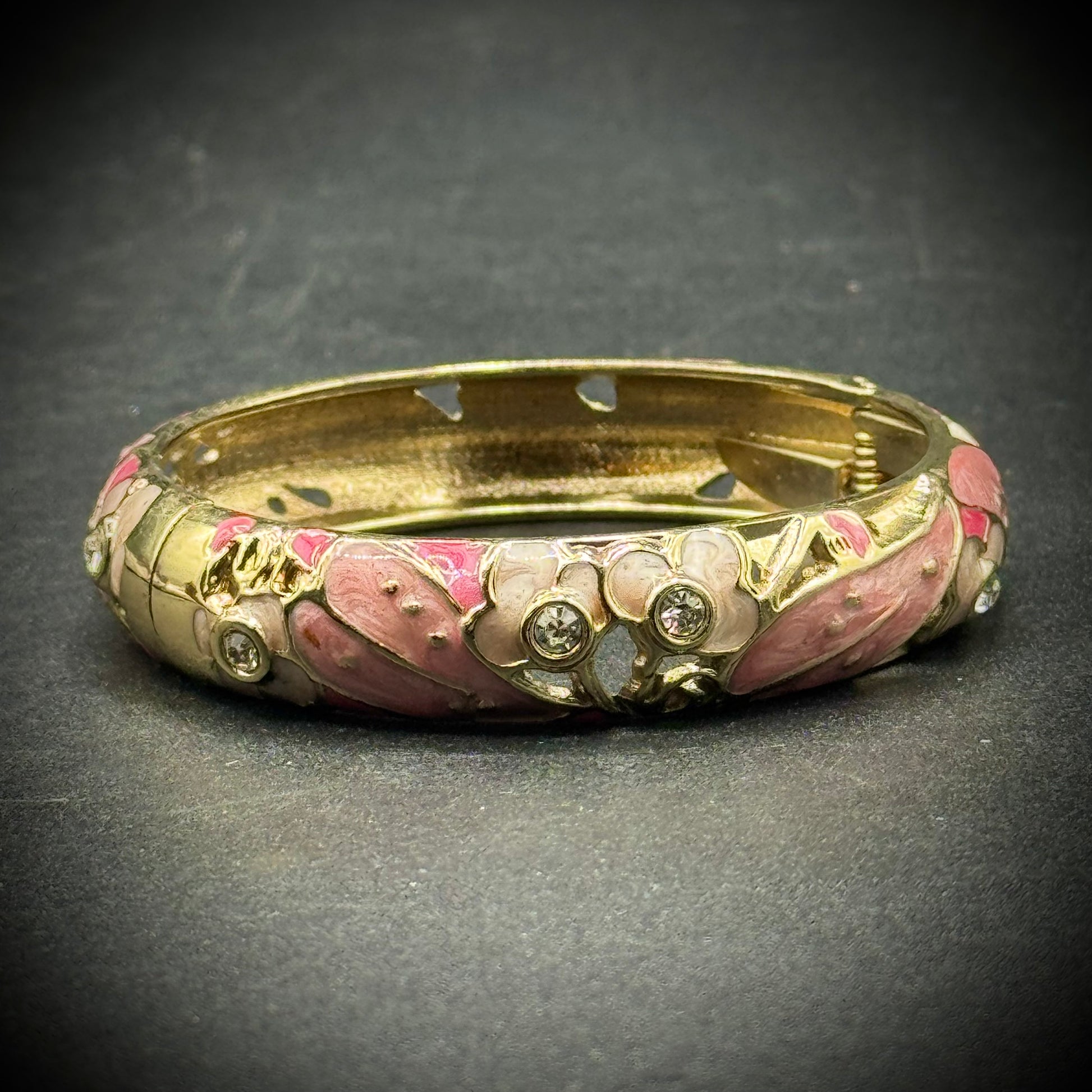 Pink Enamel & Rhinsetone Bangle Bracelet