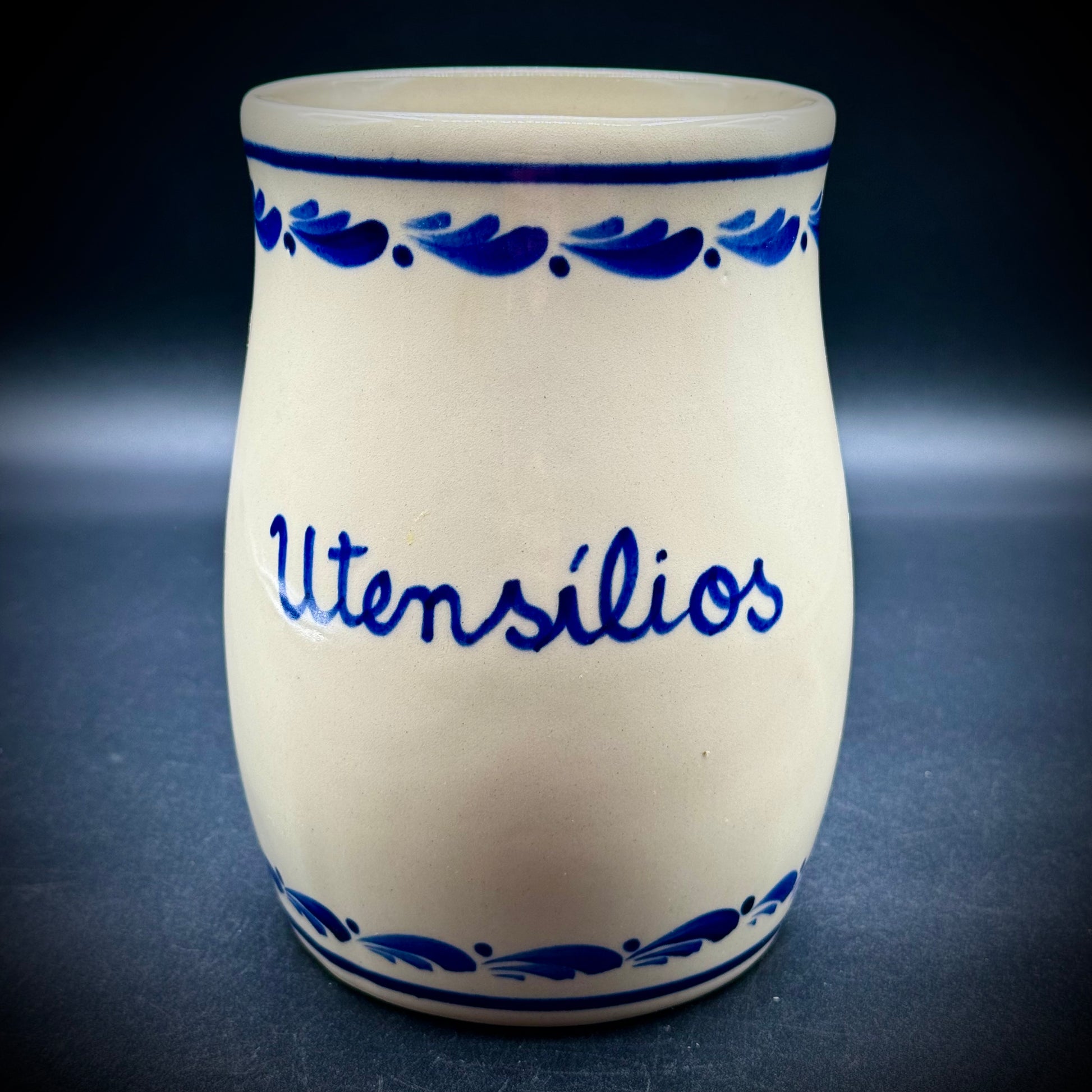 Vibrant blue and lovely decorations accent this piece of Portuguese Pottery.