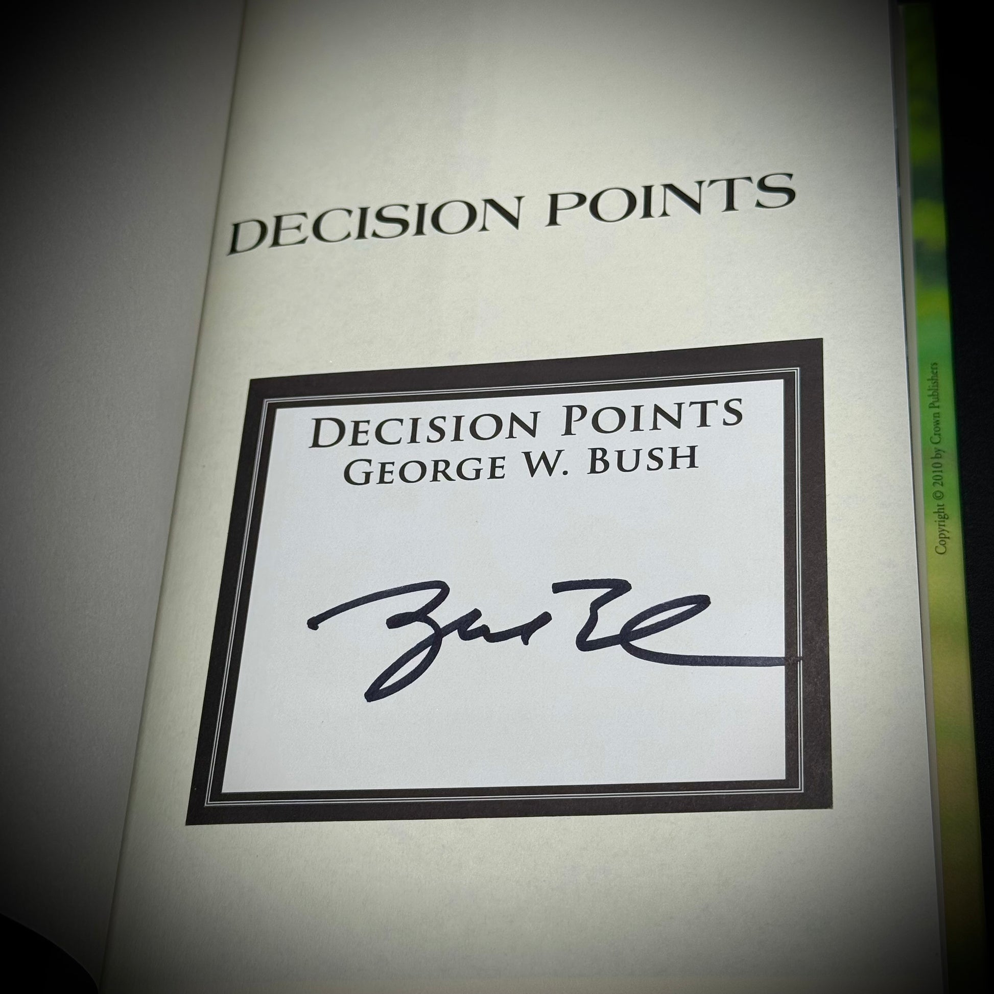 Boldly signed on an official bookplate, this edition of Decision Points by President George W. Bush comes with a note from "The Desk of George W. Bush".