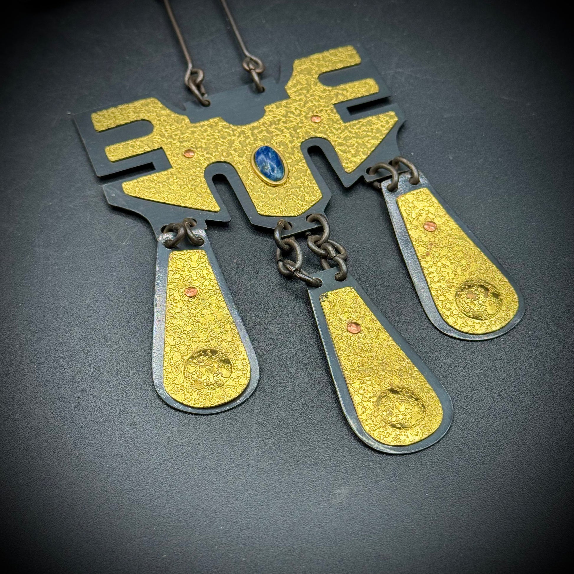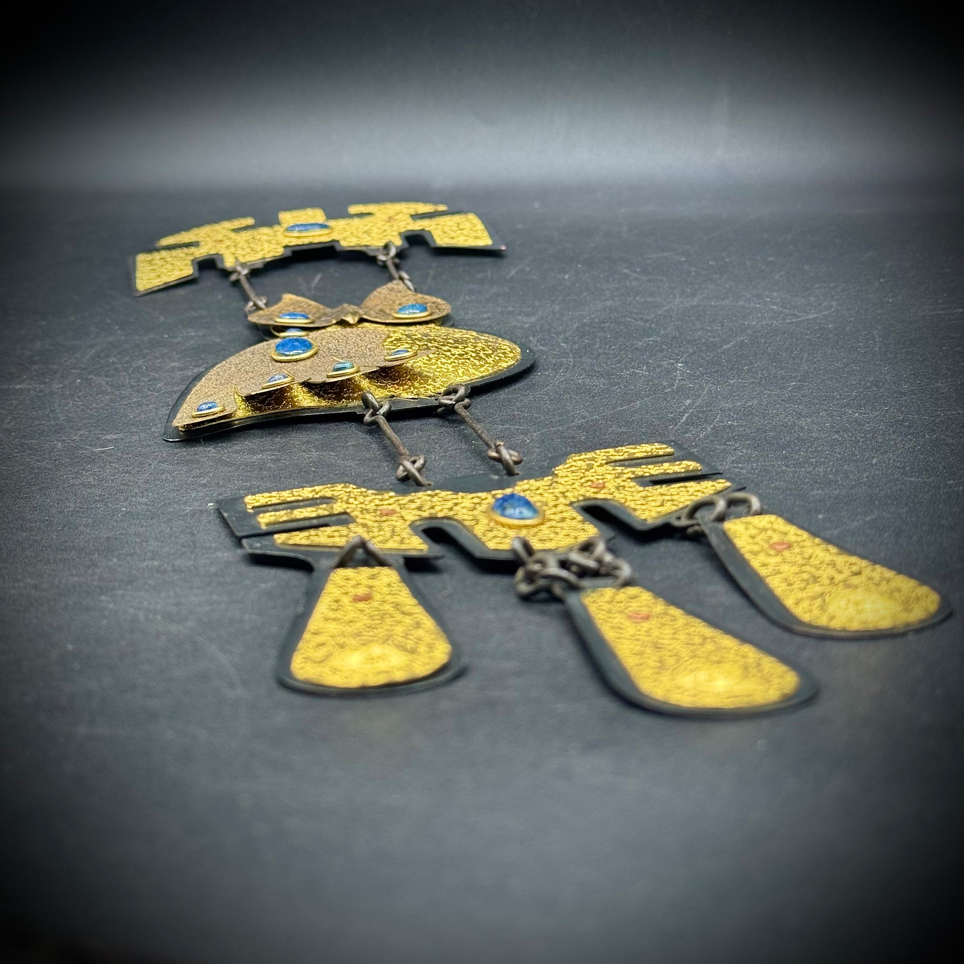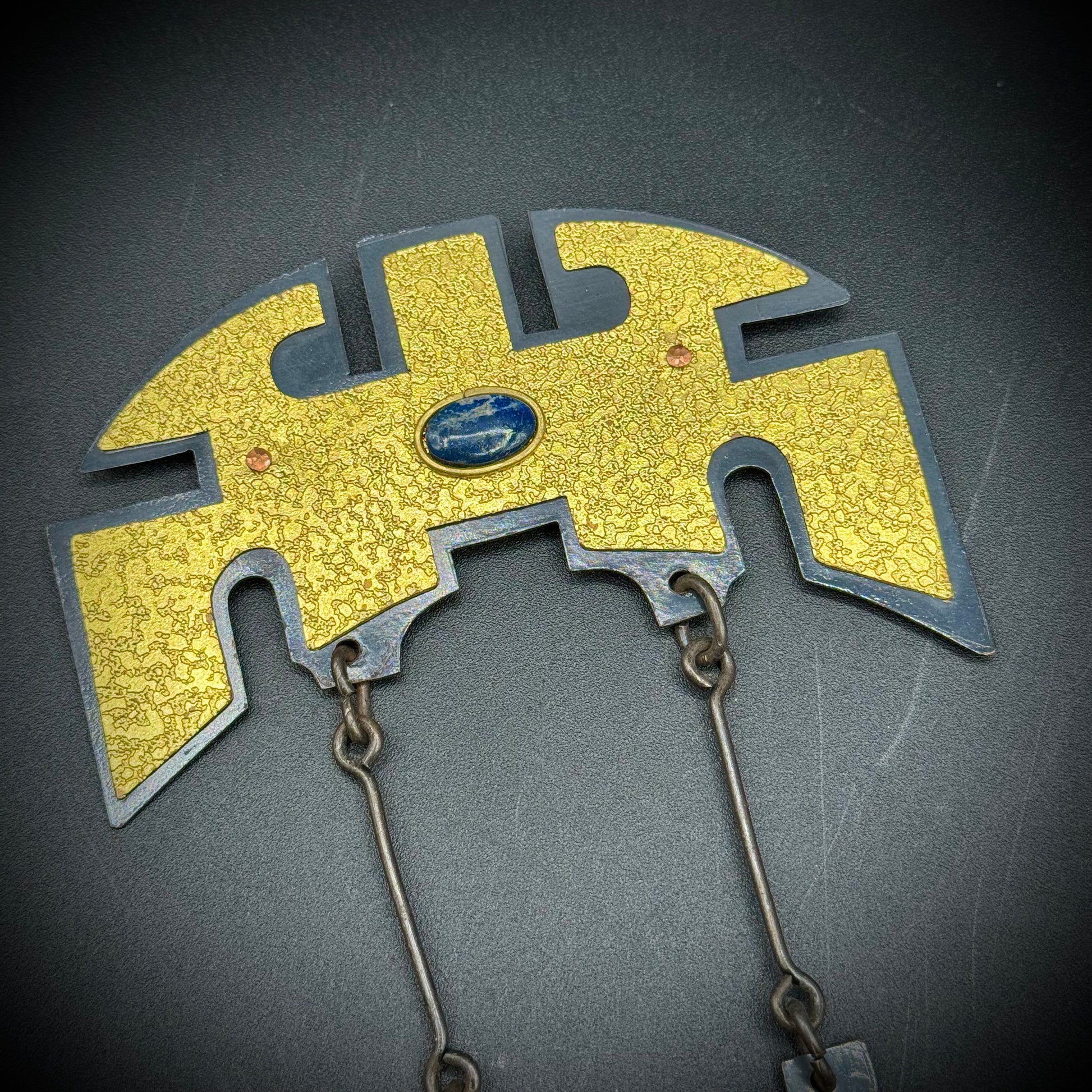 RARE MCM Brutalist Mixed Media Brass & Lapis Owl by Chilean Artist Christian Luis Gomez