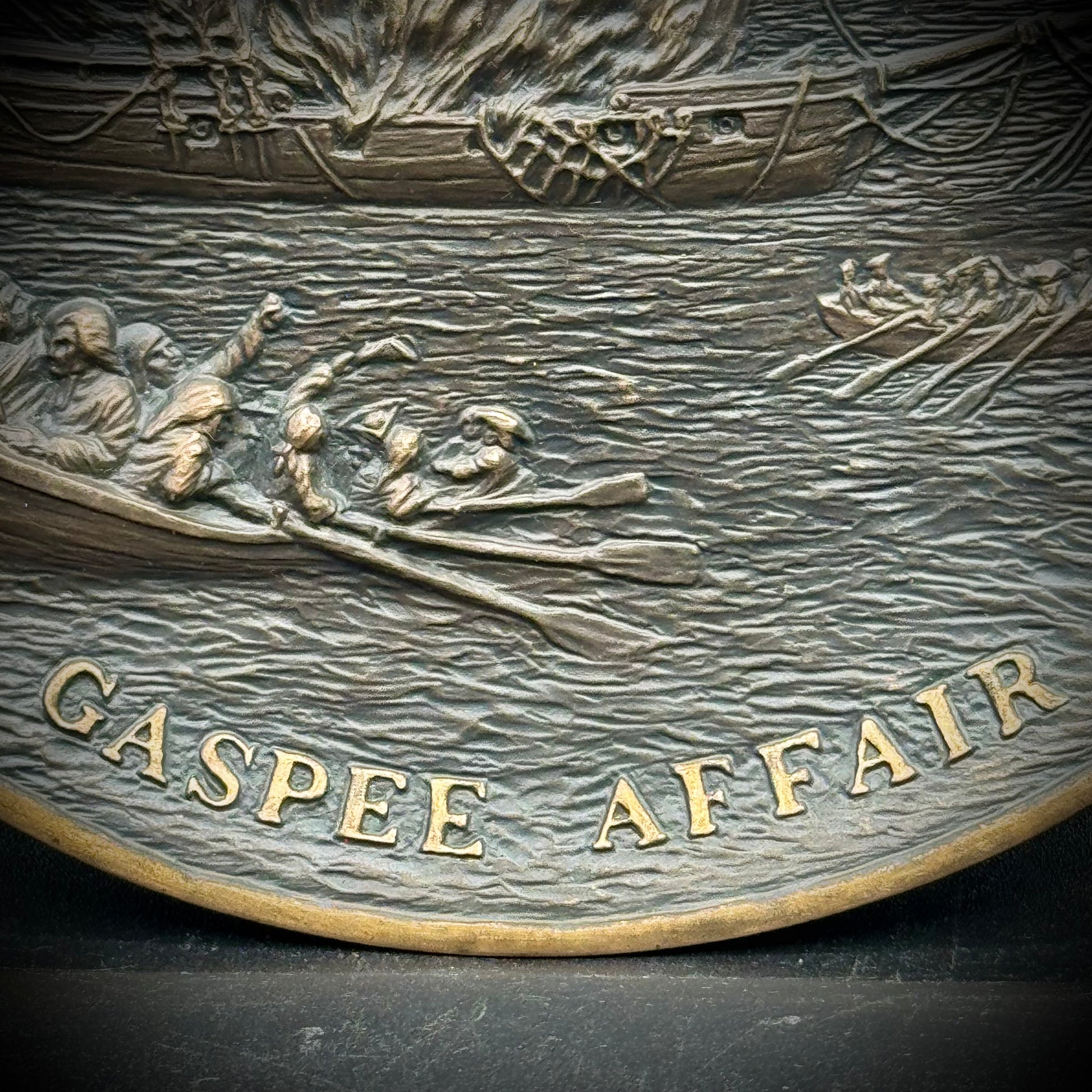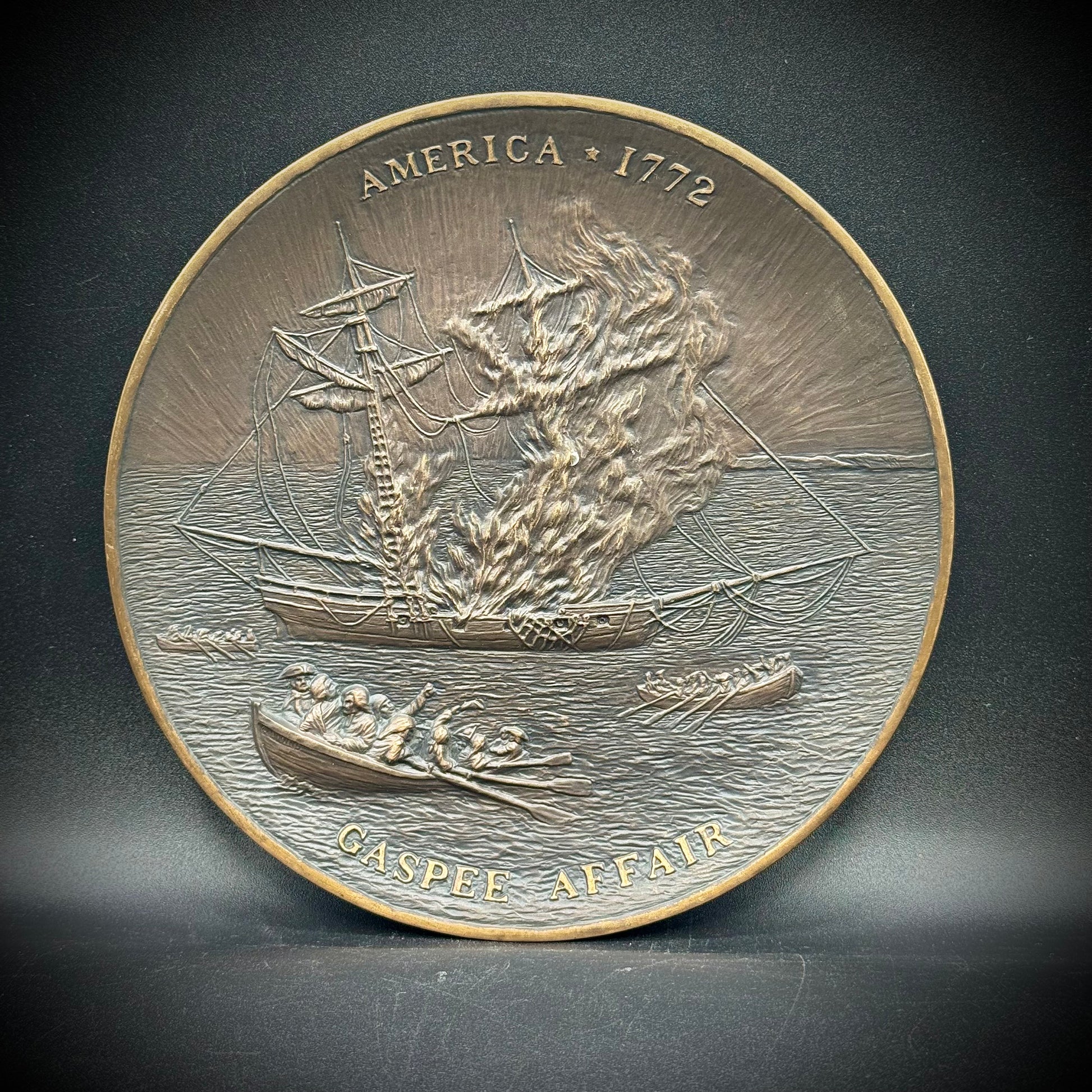 A rare and heavy bronze plate celebrating the 200th anniversary of the pivotal American Revolution even known as The Gaspee Affair. Studio marked and numbered to /150.