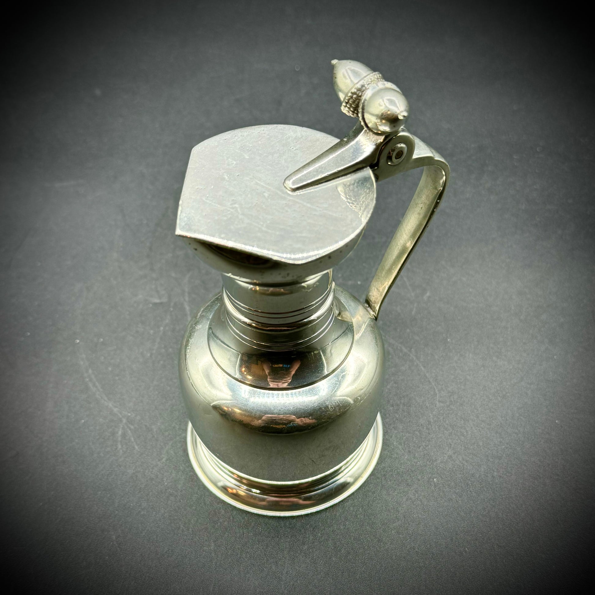 Featuring an acorn motif on the handle and a fantastic solid pewter design, this highly desirable piece of Scandinavian functional design art would make the perfect addition to any kitchen. Measures 5" tall.